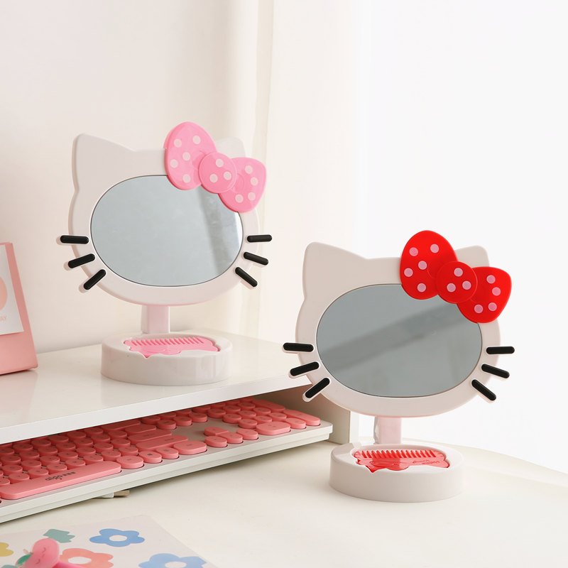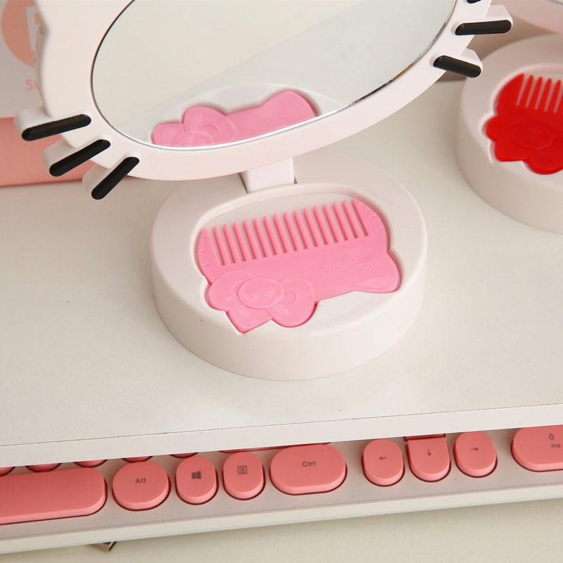Cartoon cute in wind household makeup mirror desktop student dorm dresser mirror comb removable