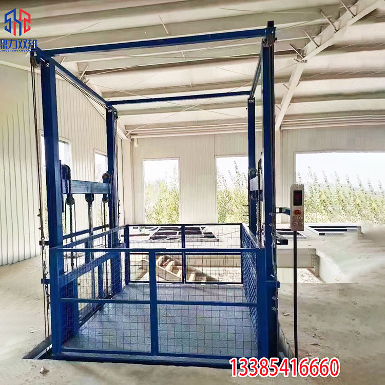 Electric lift chain debris hydraulic cargo elevator guide rail lift industrial well elevator warehouse on the cargo platform
