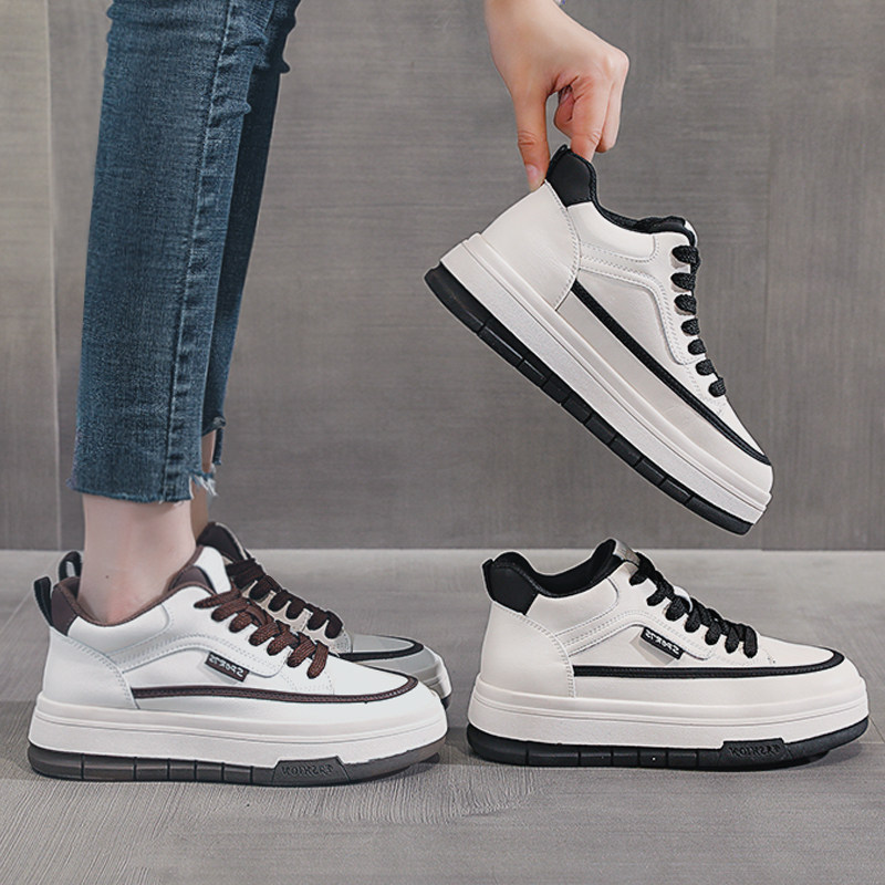 Genuine Leather Small White Shoes Woman 2023 Autumn Winter New Gush 100 Lap Thick Underfloor Shoes Sports Casual High Help Shoes-Taobao