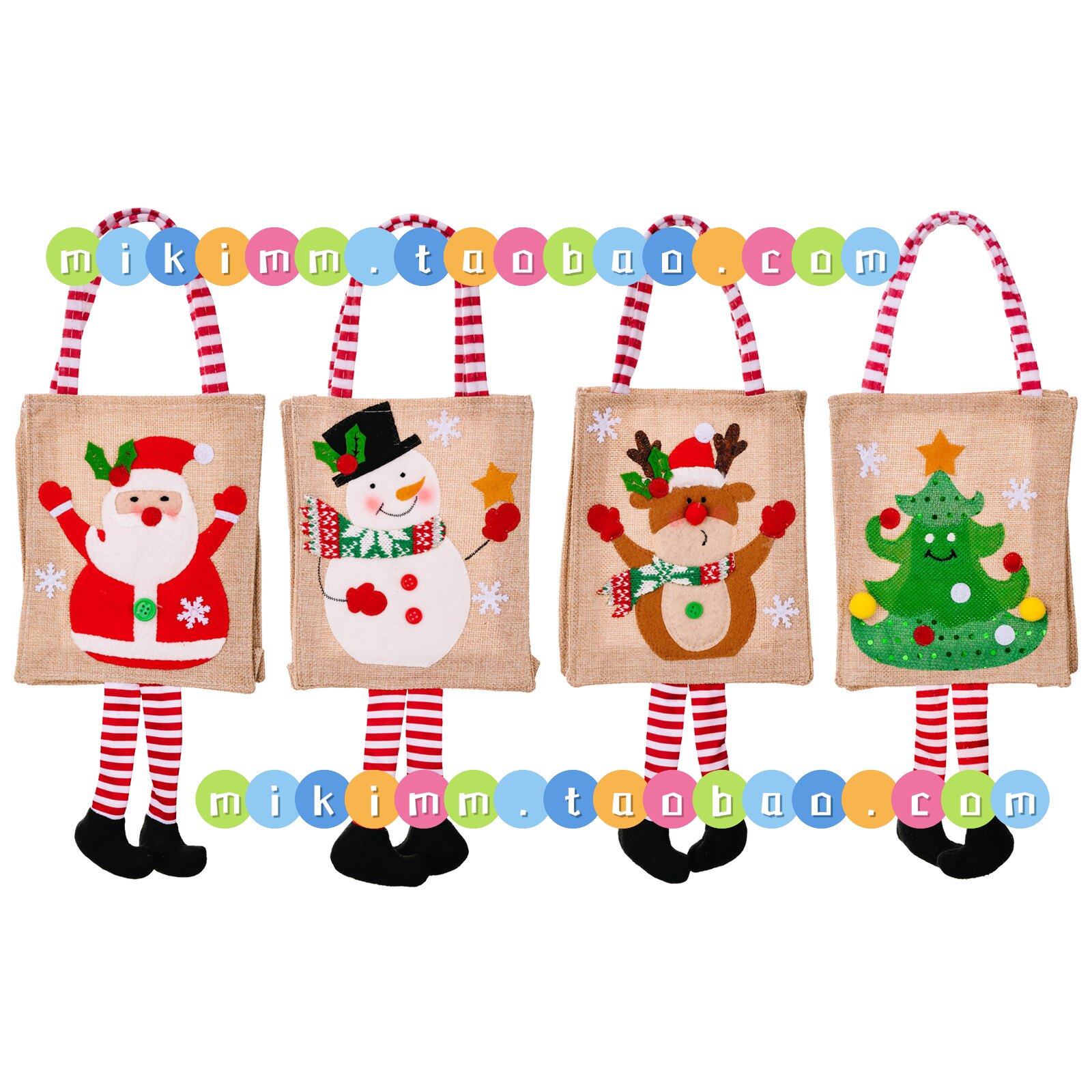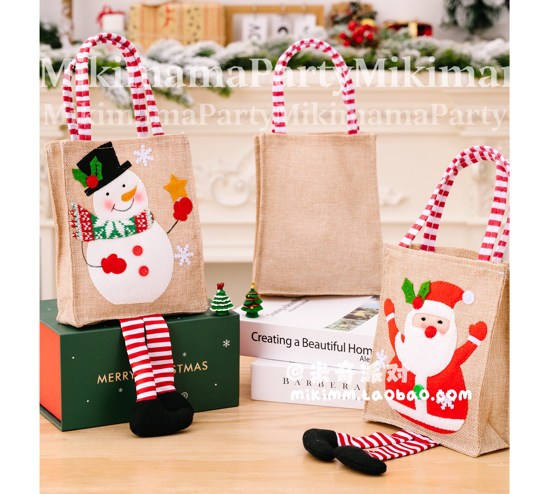 Cross-border New Christmas Decorations Cartoon Printing Hanging Striped Legs Tote Bag Festive Children Gift Gift Bag