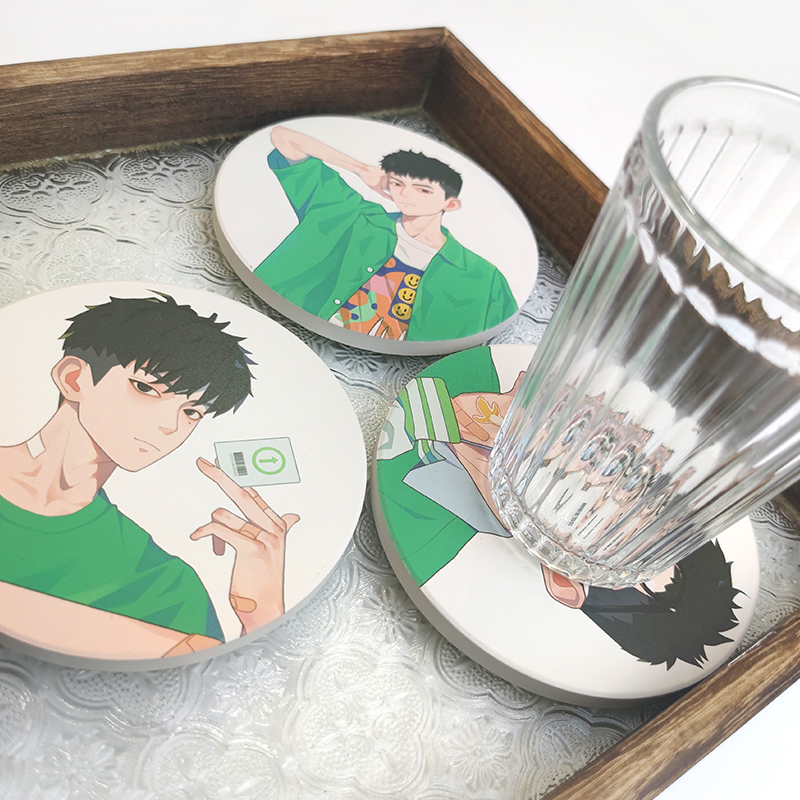 Green clothes ceramic anti - hot cup cup mat round hexagonal cup mat without shoes animated cup mat