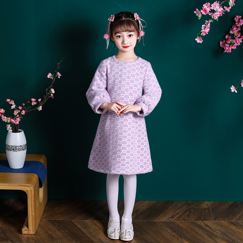 Girls autumn winter bangown dress in China wind clothes plus thickening children improved Han dress suit