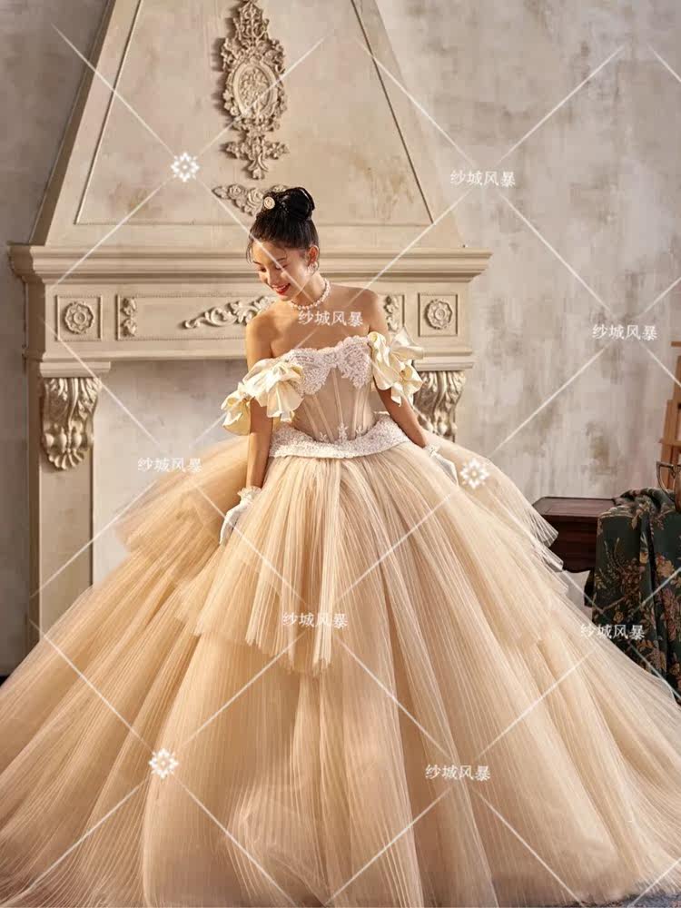 Photo studio theme clothing couple photo photo photography photography dress palace light and shadow oil painting wind puff skirt high-end wedding dress