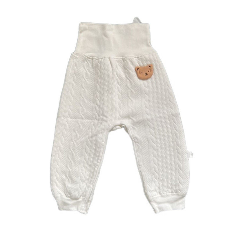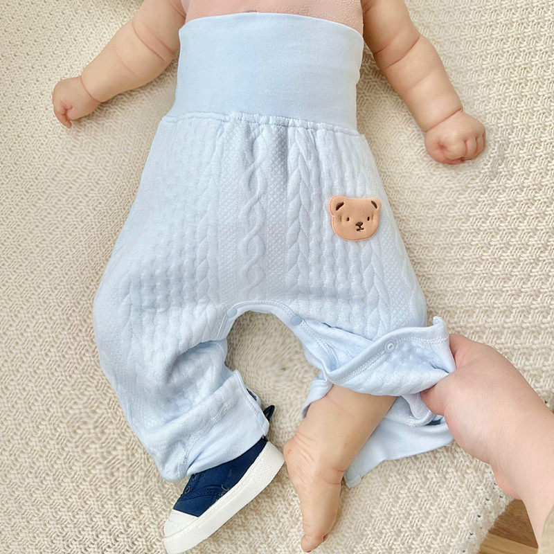 Newborn baby by buckle pants open crotch warm clip cotton large pp high waist thin cotton protective belly pants dark buckle changing diaper-Taobao