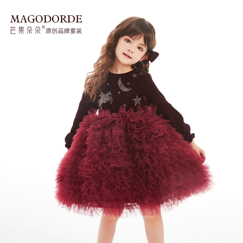 Autumn and winter new girl velvet dress for children's children's autumn clothes small skirts child clothing foreign air baby princess skirt-Taobao