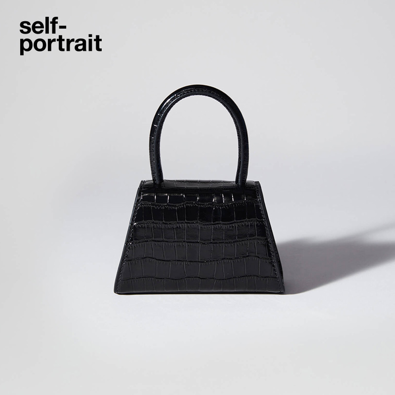 self-portrait 2023 early spring classic black micro silver bow handbag