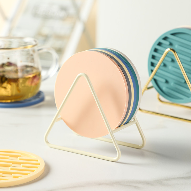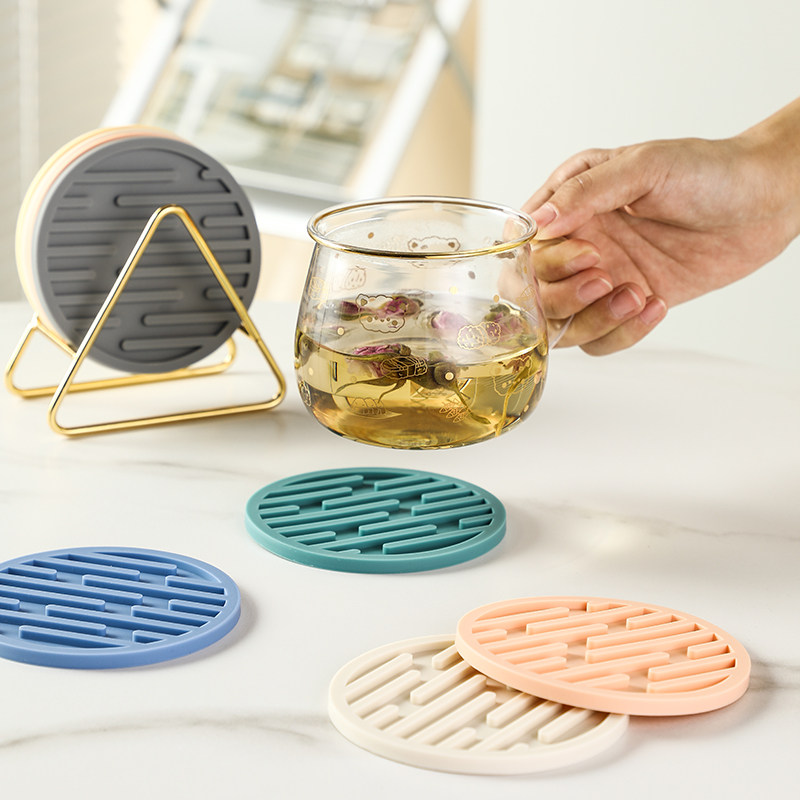 Nordic anti-scalding coaster heat insulation pad silicone high temperature resistant round table mat bowl mat office non-slip teapot coaster