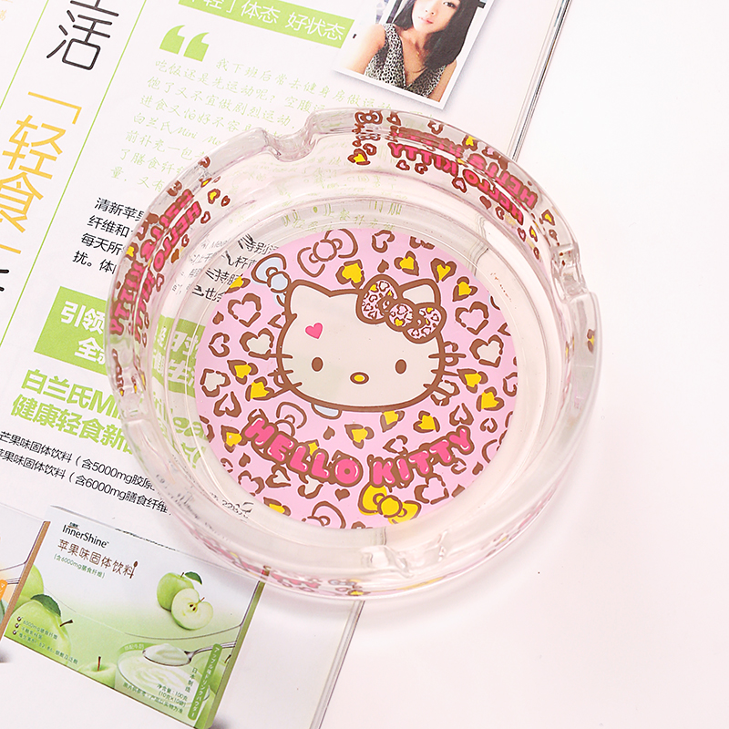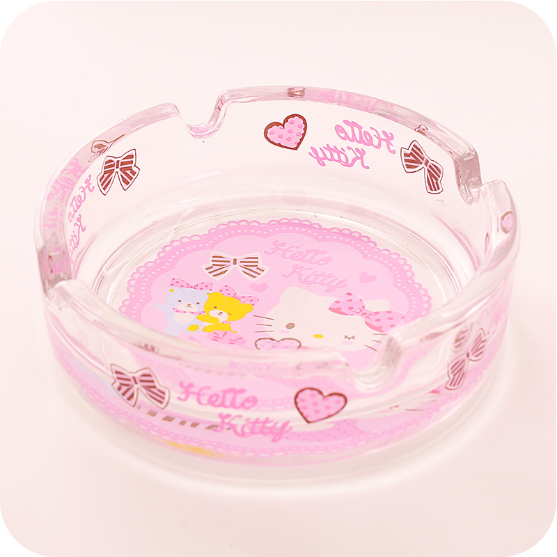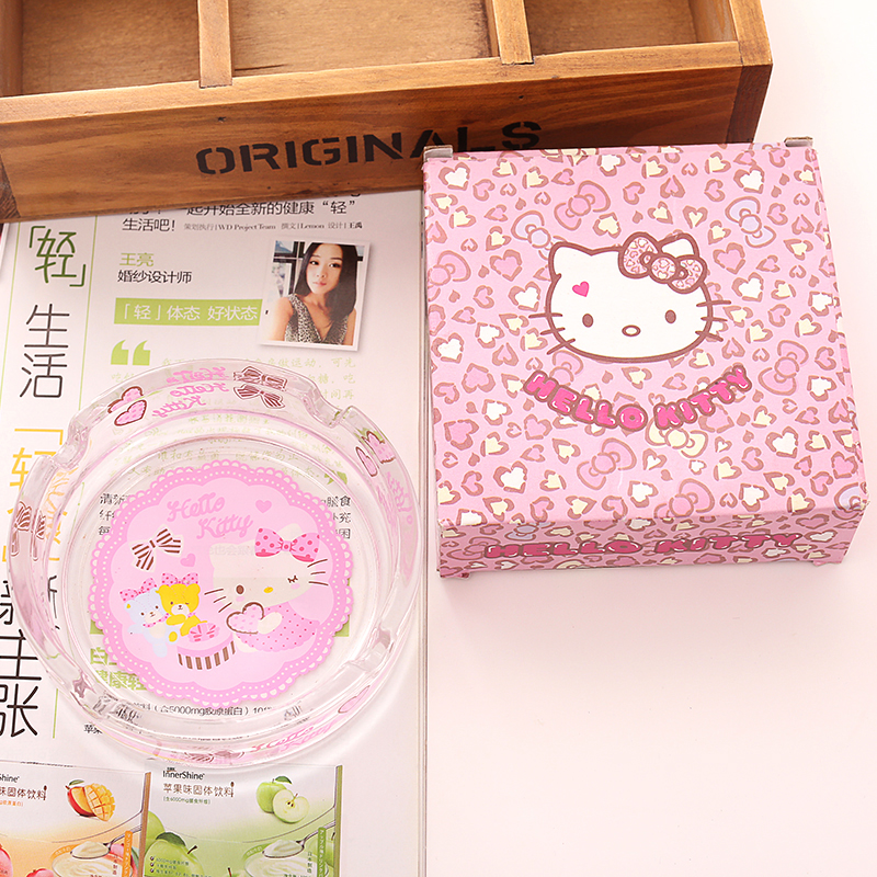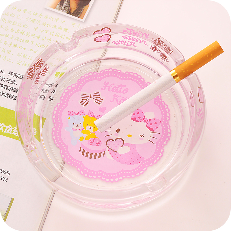 The girl Cartoon crystal ashtray cute glass ashtray large household living room transparent personality cylinder