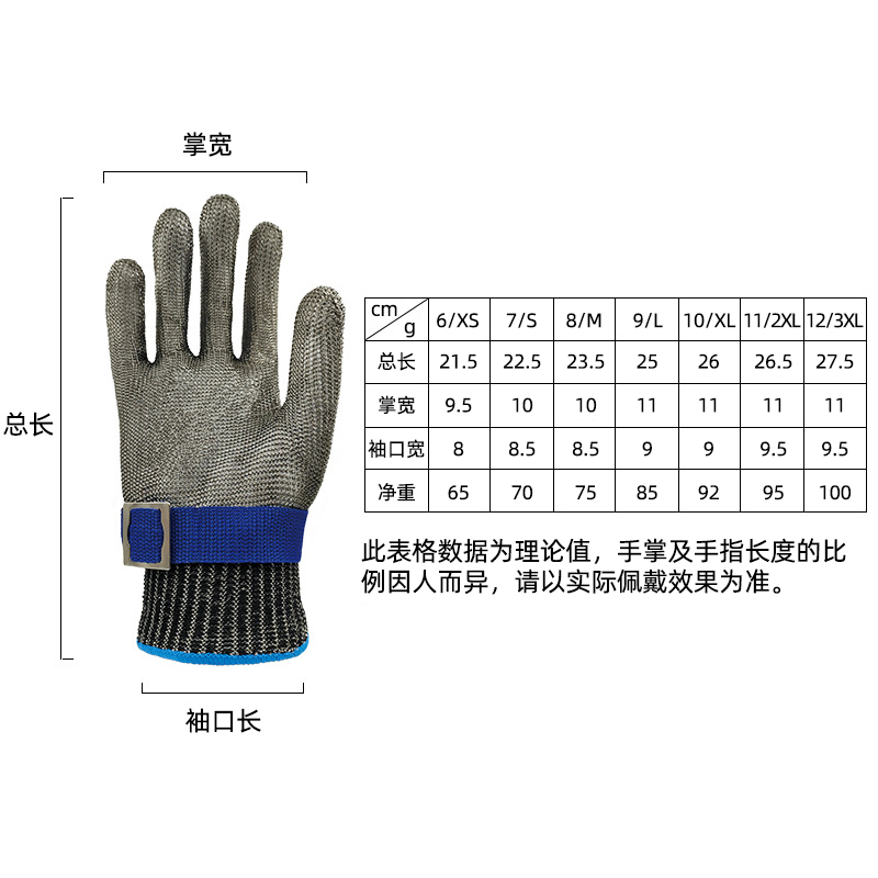 XS code wire gloves S code wire gloves M code wire gloves L code wire gloves XL code wire gloves XXL code wire gloves XXXL code wire gloves Polyester cutting
