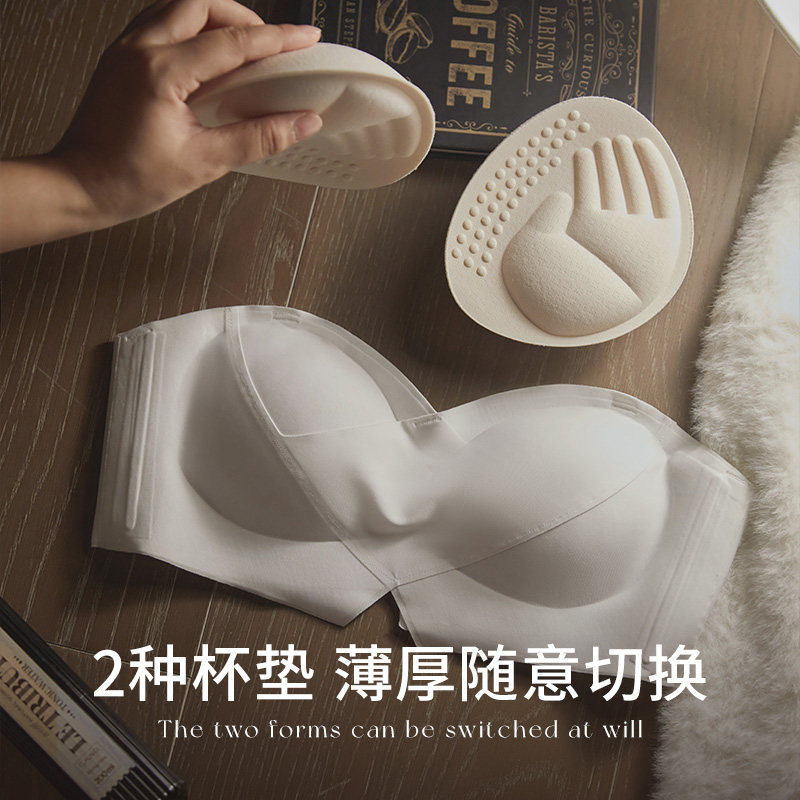 Outer Flared Underwear Woman No Shoulder Strap Small Chest Expleted Large Chest Gathering Solid Non-slip Anti-Walking Light Bra Comic Bra No Marks-Taobao
