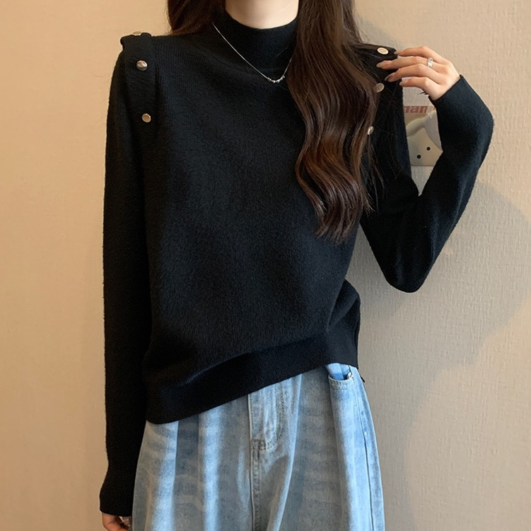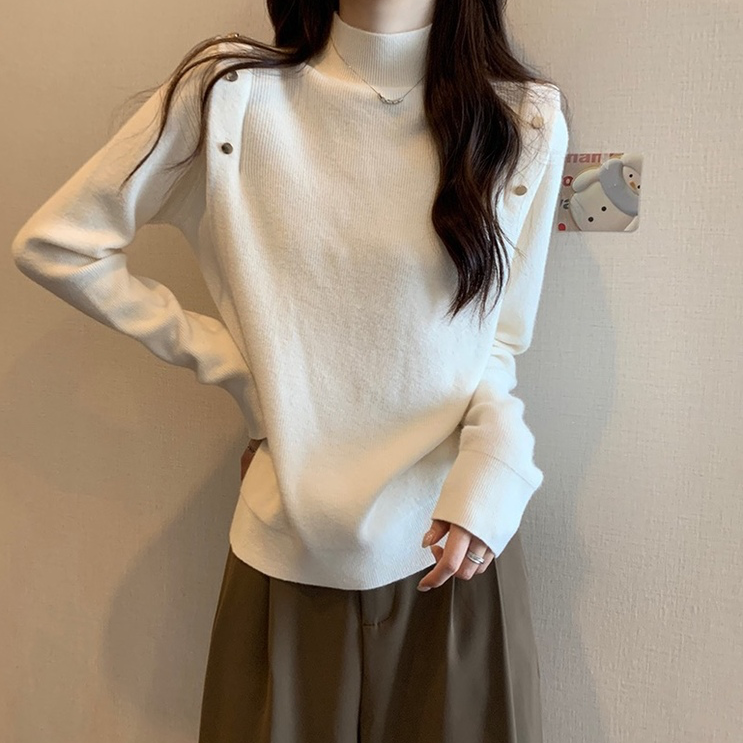 Big code French style display slim positive shoulder half height collar long sleeve bottom shirt spring autumn fat younger sister cover belly foreign air 100 lap blouses-Taobao