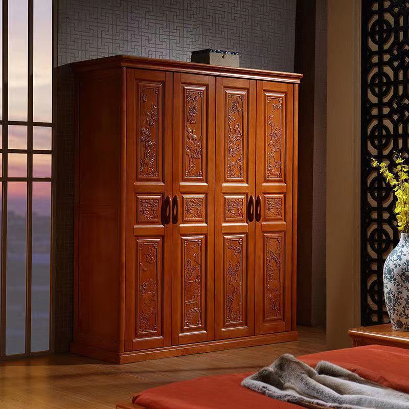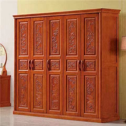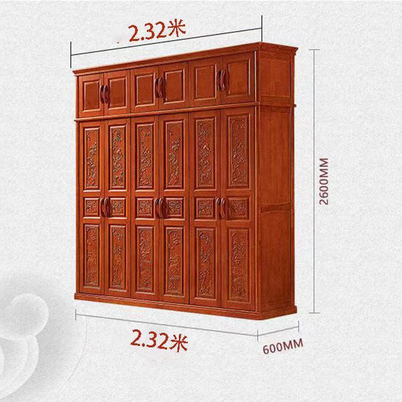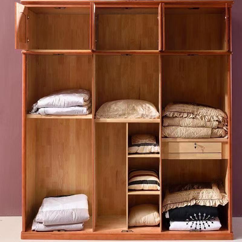 Solid Wood Wardrobe Three 45 Six Doors Modern Chinese Rubber Wooden Large Wardrobe Economy Home Storage Bedroom Closet-Taobao
