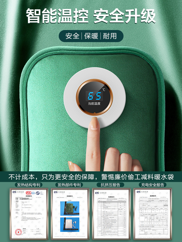 Upgraded digital display dark green (hand warmer hot water bottle charger) imported velvet Water and electricity separation