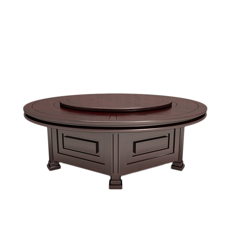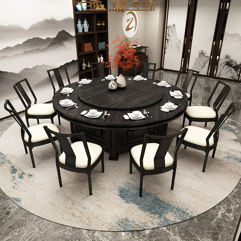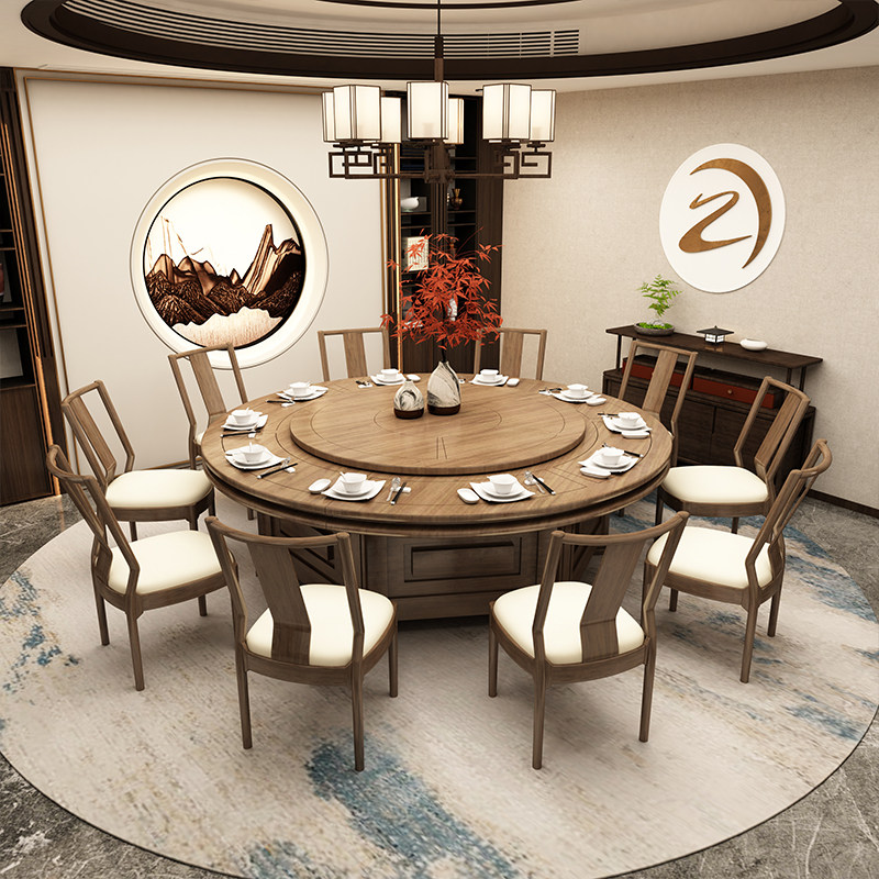 Hotel box new Chinese electric big round table hot pot table hotel banquet automatic rotating dining table solid wood table and chairs