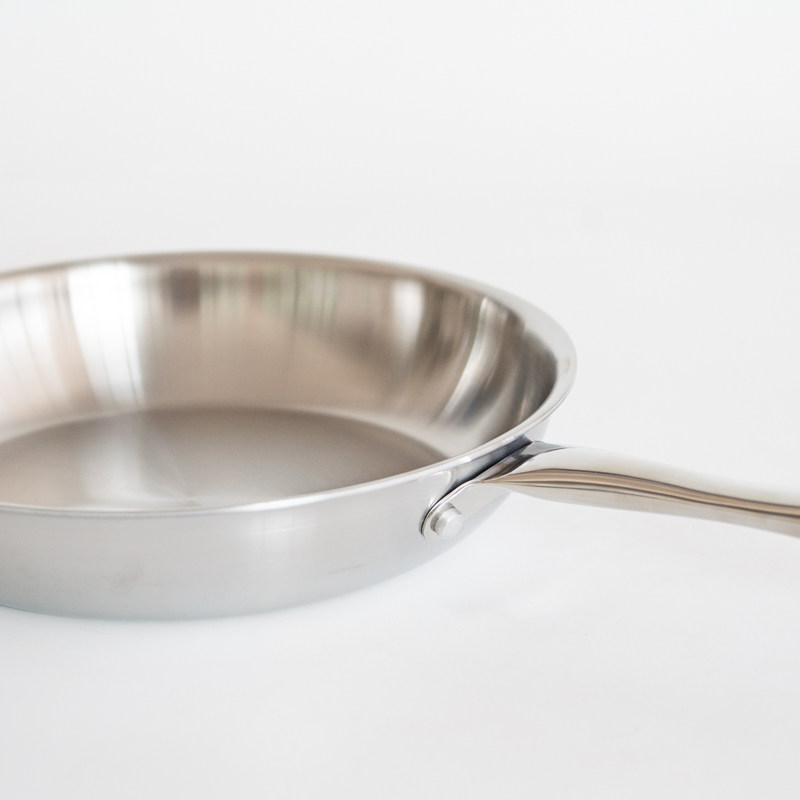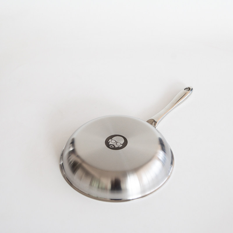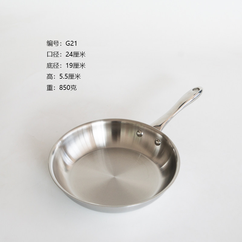 Foreign trade tail goods three-layer steel one-piece molding 24cm flat-bottomed frying pan 18-10 stainless steel uncoated physical non-stick