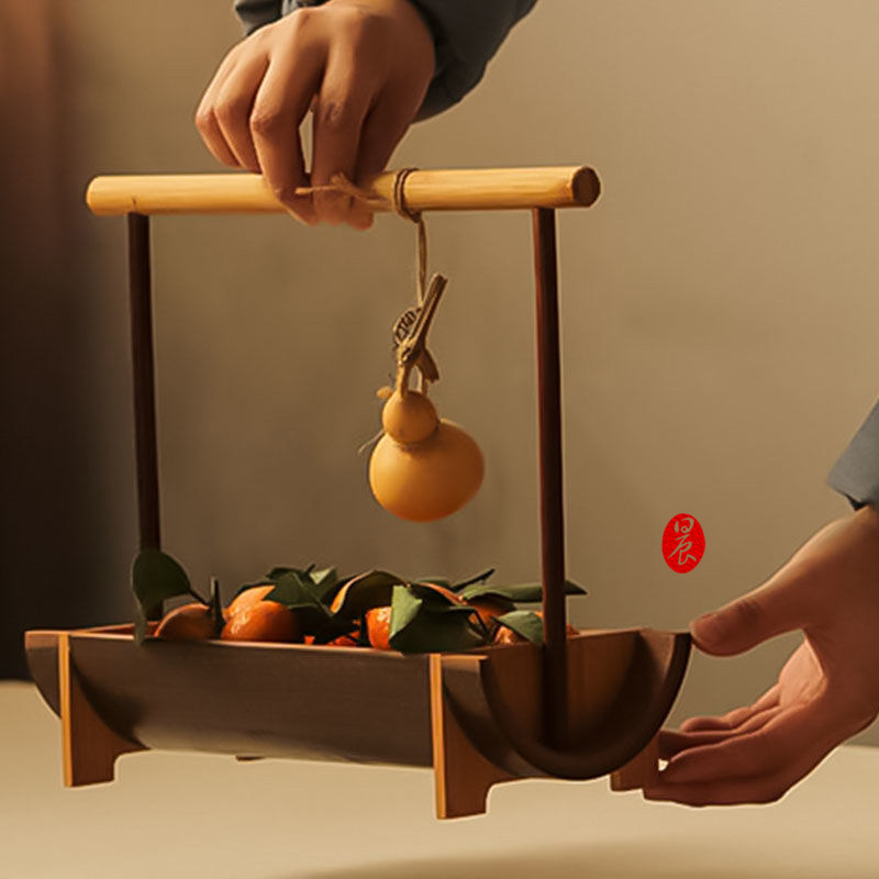 Chinese-style stove boiled ice afternoon tea fruit plate bamboo tray set set plate refreshment plate tableware handmade bamboo weaving