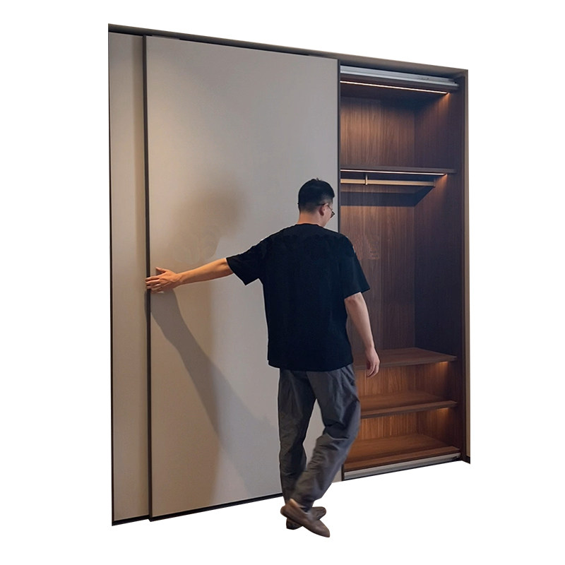 Customized wardrobe door to custom metal wall minimal cloakroom PET skin sensitivity Oxygen push door customization