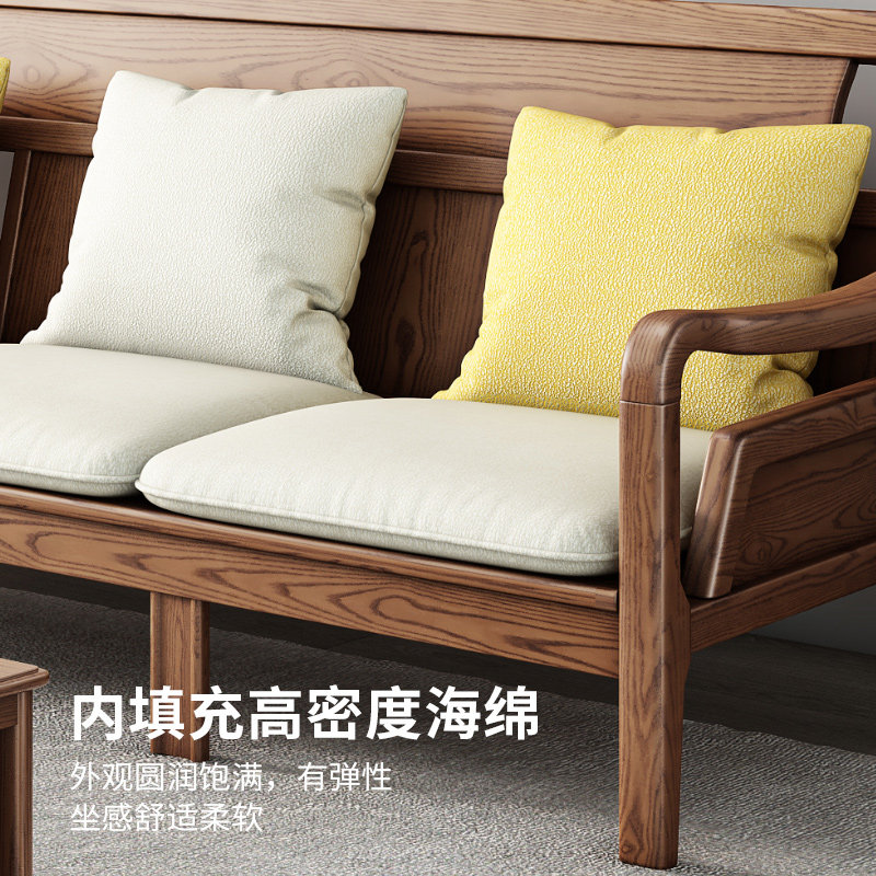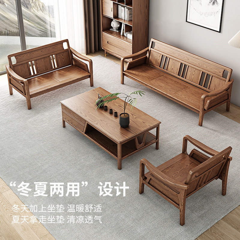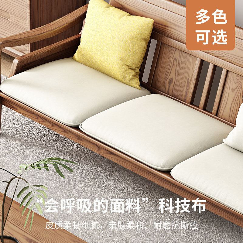 Nordic three-person sofa solid wood fabric winter and summer dual-use living room new Chinese technology fabric sofa ash wood furniture