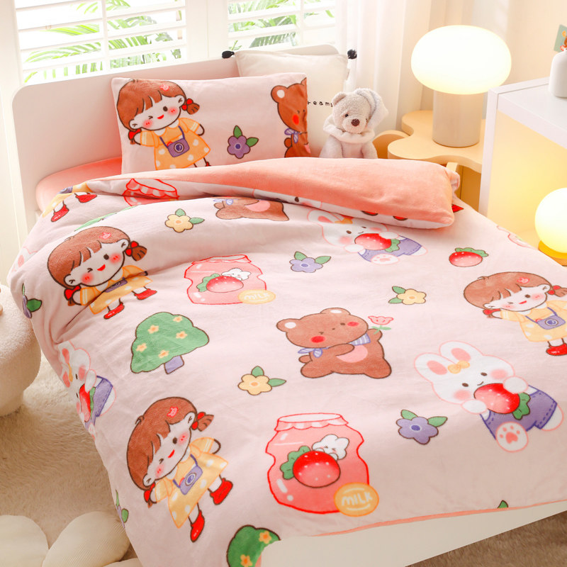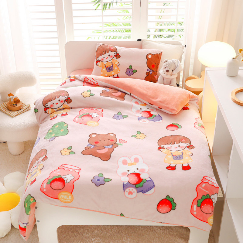 Kindergarten quilt three pieces of winter coral velvet cots with cots and two-sided cream cots