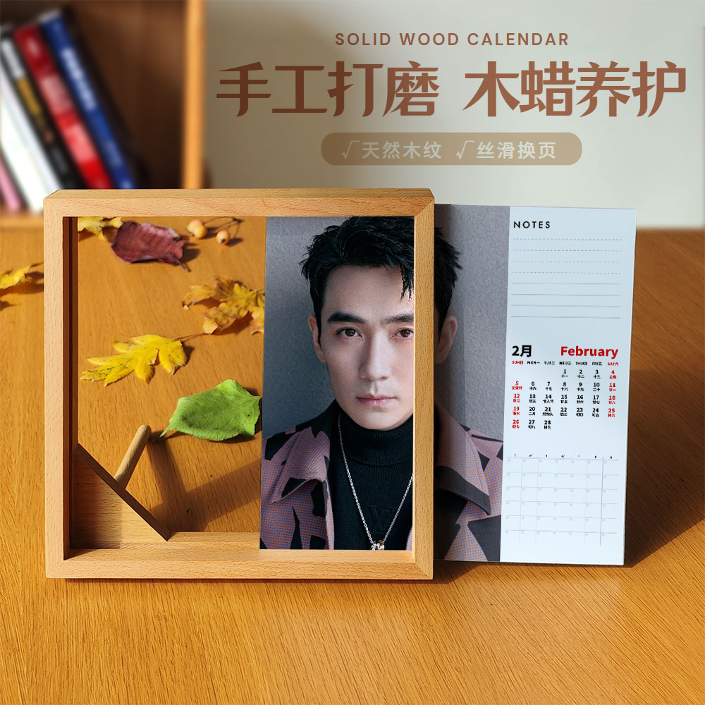 Juichi Longtai calendar 24-year lunar calendar photo frame solid wood annual calendar notepad Writing true New Year's Christmas birthday present-Taobao