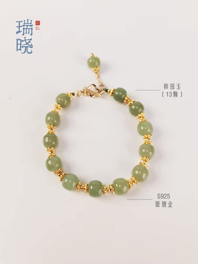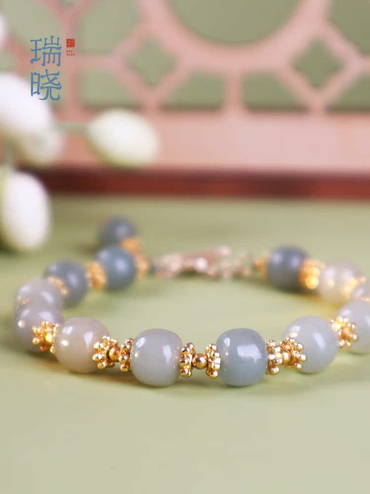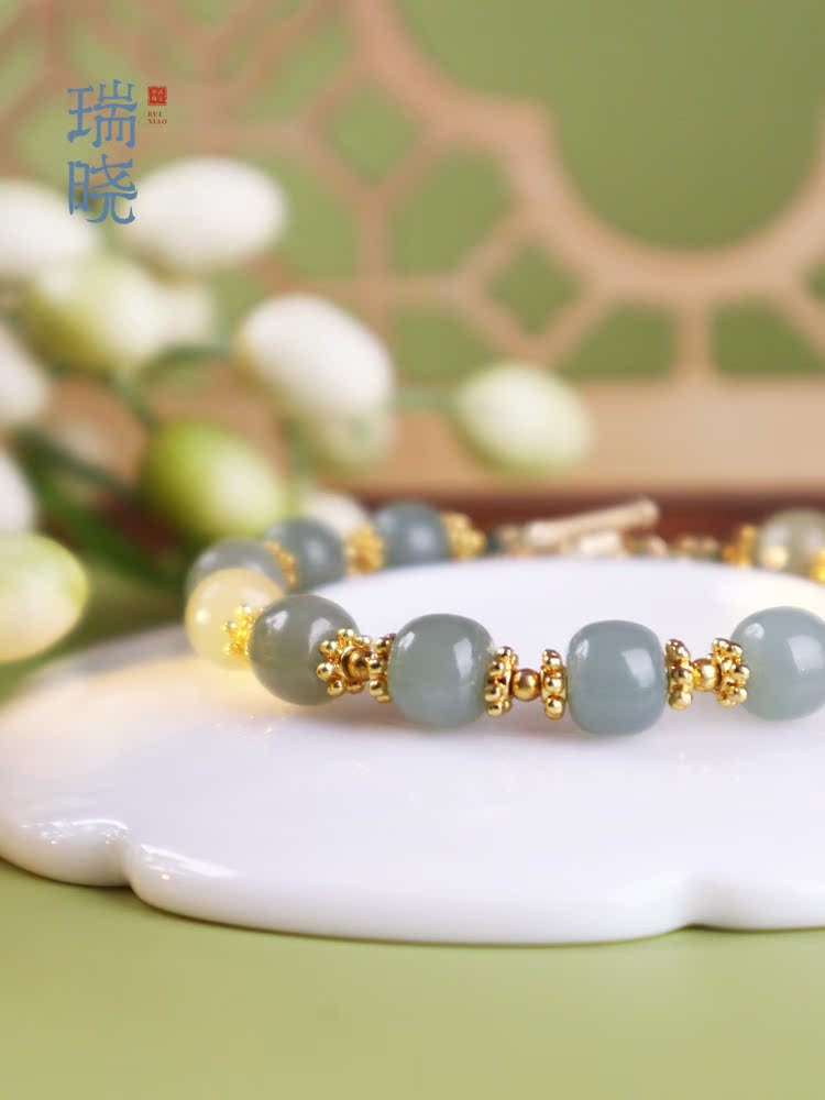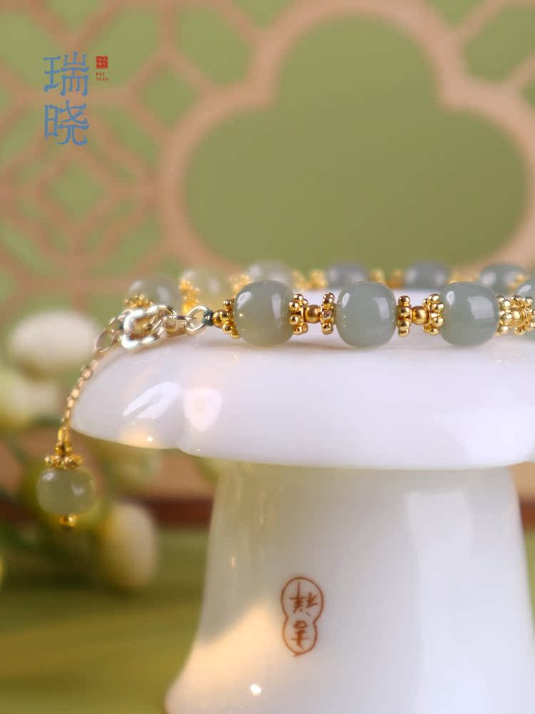 Ruixiao four-leaf flower natural Hetian jade sapphire bracelet female models s925 sterling silver Qingshui transfer bead bracelet birthday gift