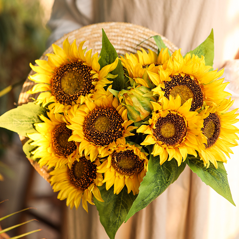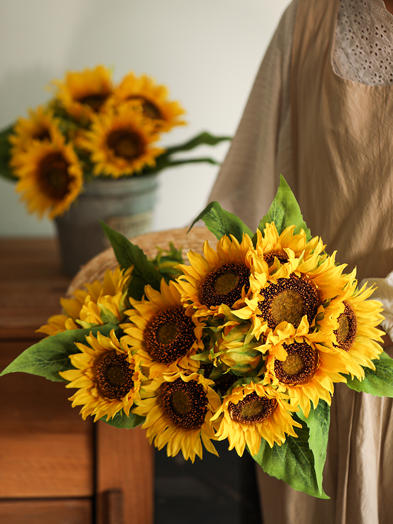 Sunflower fake flower simulation flower furnished plastic flower living room bouquet decorated flower silk flower table light luxury pieces