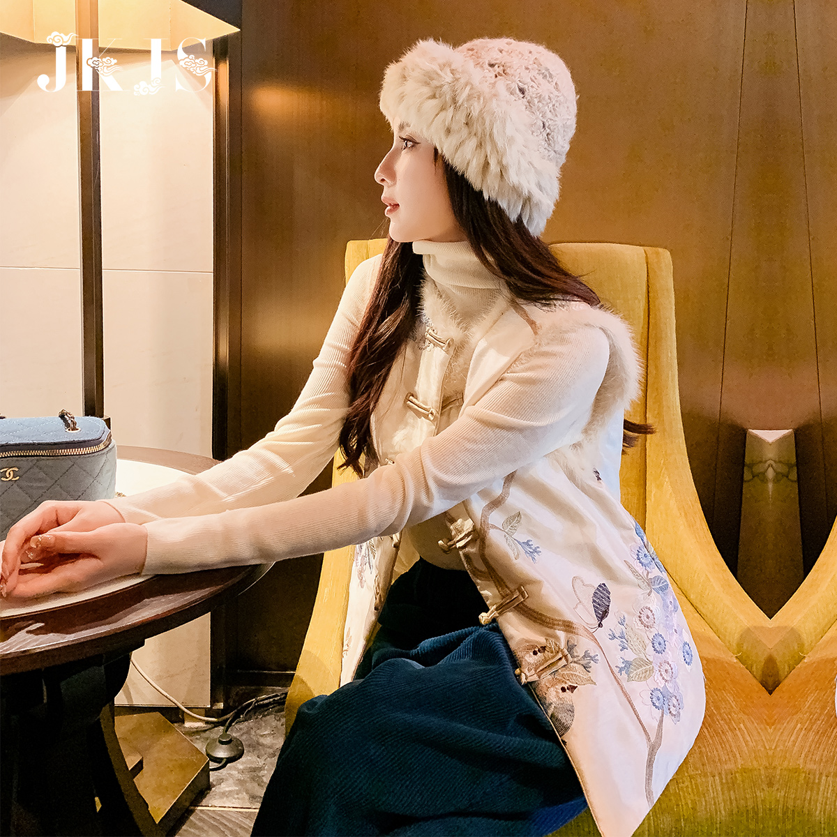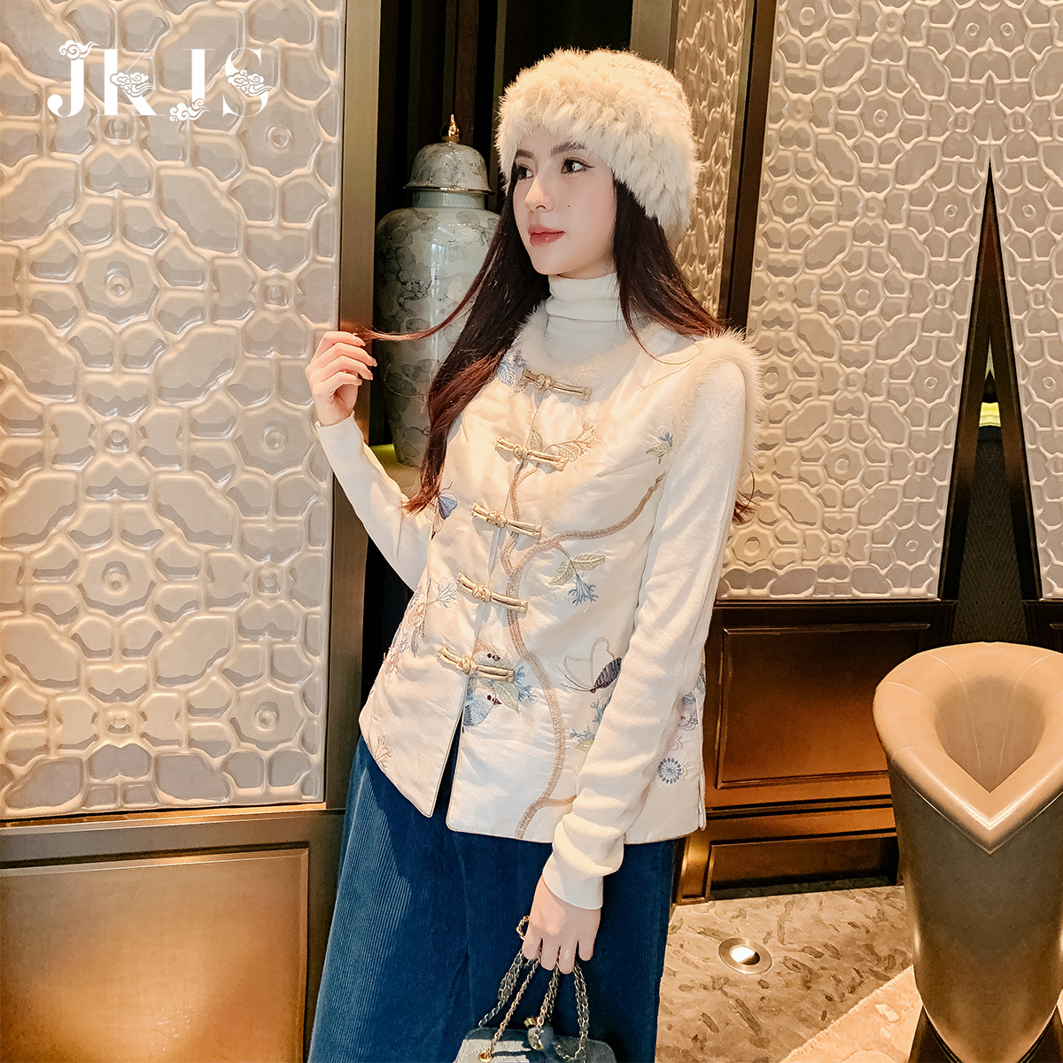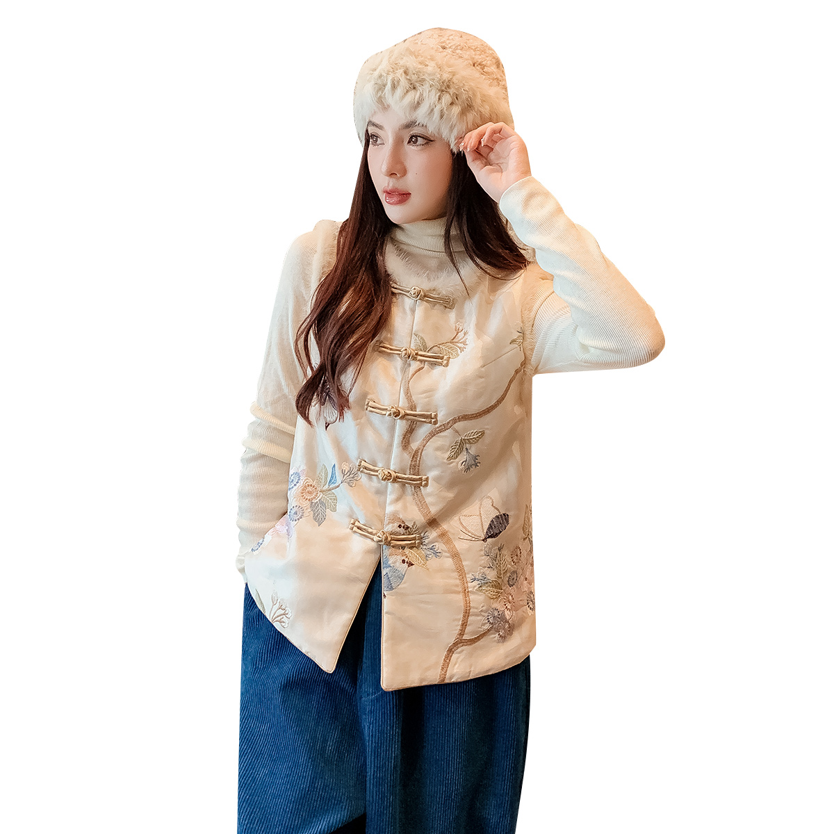 Mink Wool Splicing Tang Dress Lady China Wind Women's Winter Dress Cotton Clothing National Tide Waistcoat Vest New Chinese Pan Button Little Padded Jacket-Taobao