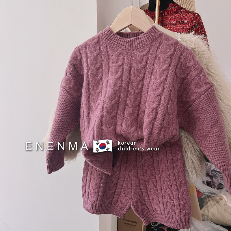 Korean children's clothing 2023 girls sweater set baby Yang Yang Yang Yang Knitted Knife Shorts two pieces