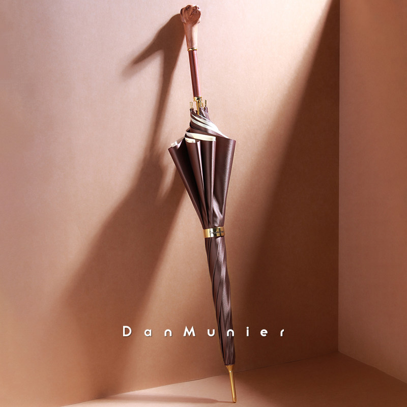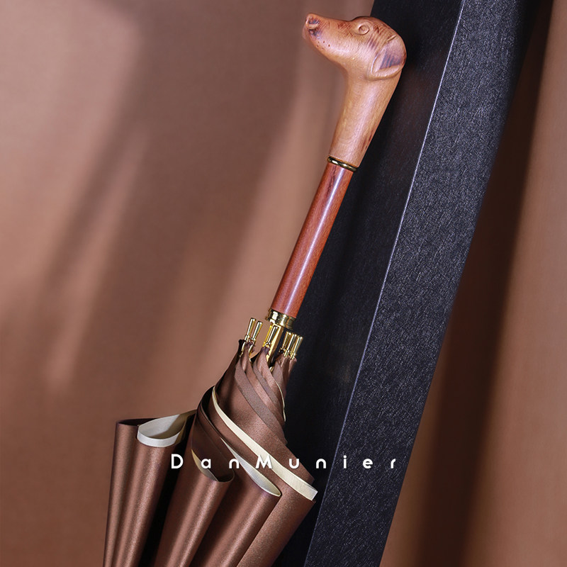 DanMunier creative long handle wooden handle light luxury gentleman dog solid color large umbrella Chinese style retro sunny umbrella - Taobao