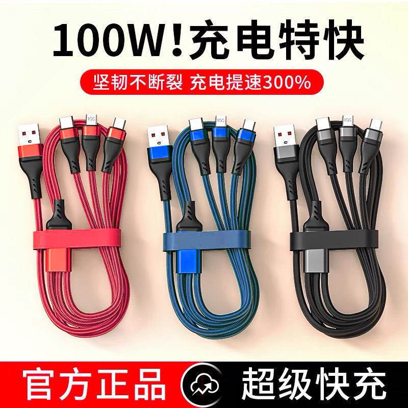Ordinary three-in-one data line (1 m) color random 100W flash (deep sea blue-1 m) stretch one drag three 66W fast charge (deep space gray-1 2 m) three-in-one data line
