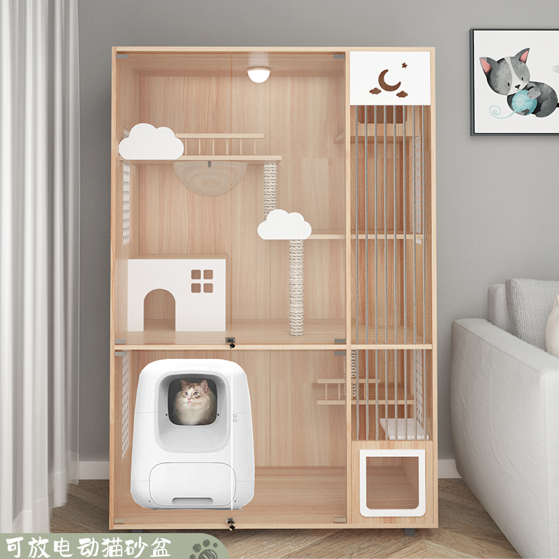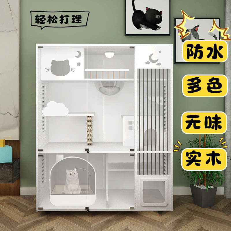 Cat House Luxury Villa Cat Cage Solid Wood Indoor Home Triple Superpanoramic Cat House Space Cabin Cat House Cat Cabinet