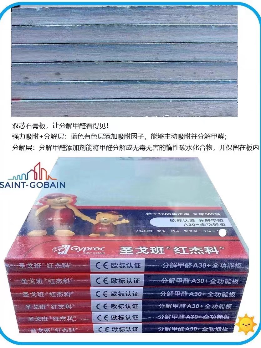 St. Gobain Red Jeko A30 waterproof and fireproof decomposing formaldehyde plasterboard full-function board eco-friendly safety-Taobao