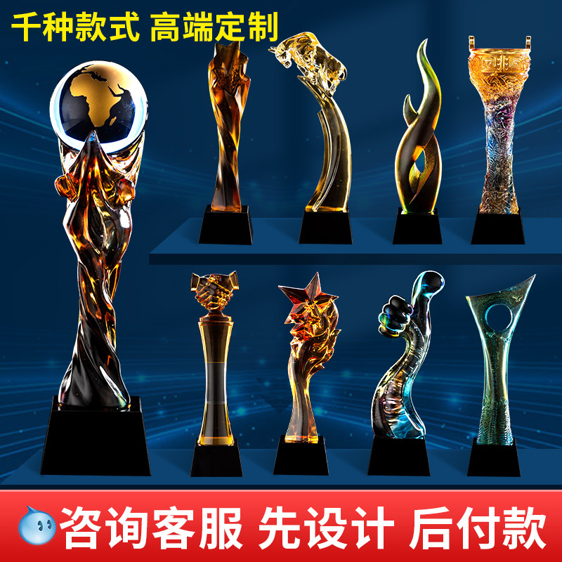 Glazed trophies upscale atmospheric creativity Custom Pentagon Excellent staff to set the lettering for the Crystal Trophy-Taobao