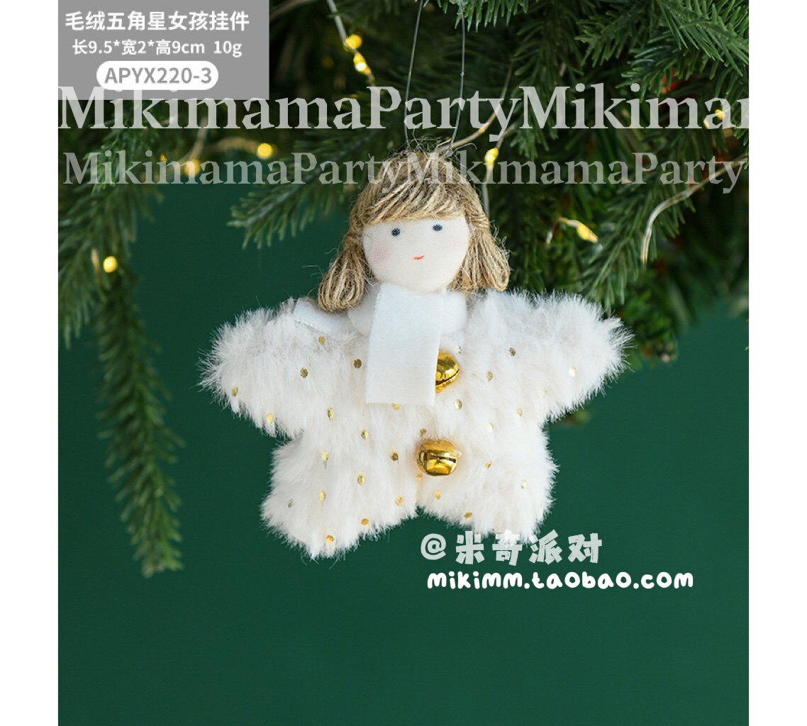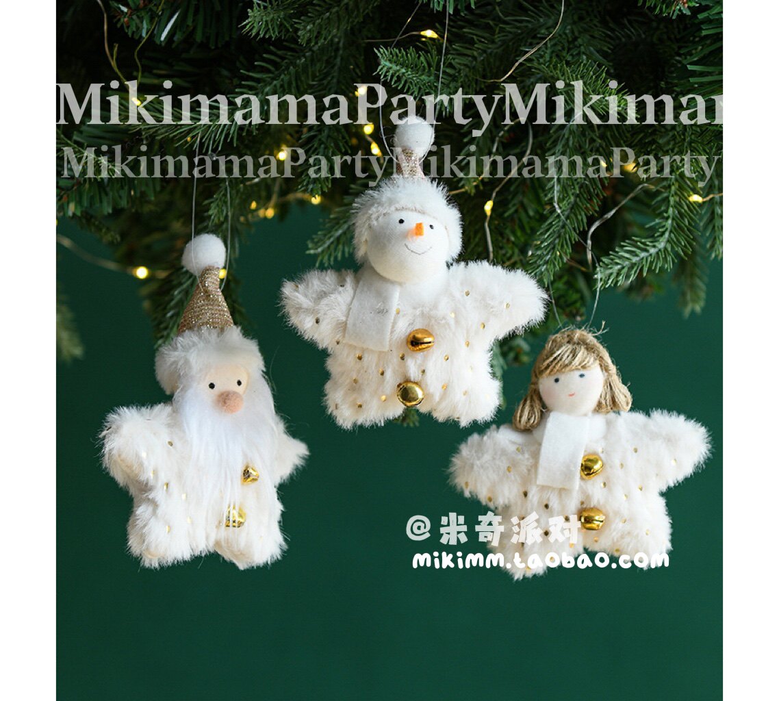 Cross-border Christmas creative white plush five-pointed star bell doll puppet decoration decoration Christmas tree small pendant