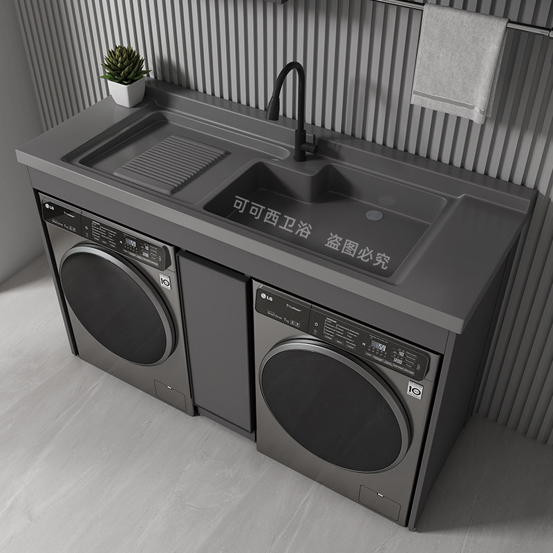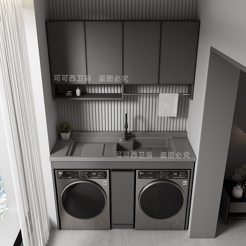 Customized balcony double washing machine cabinet with washboard combination space aluminum laundry wardrobe integrated laundry pool with dryer - Taobao