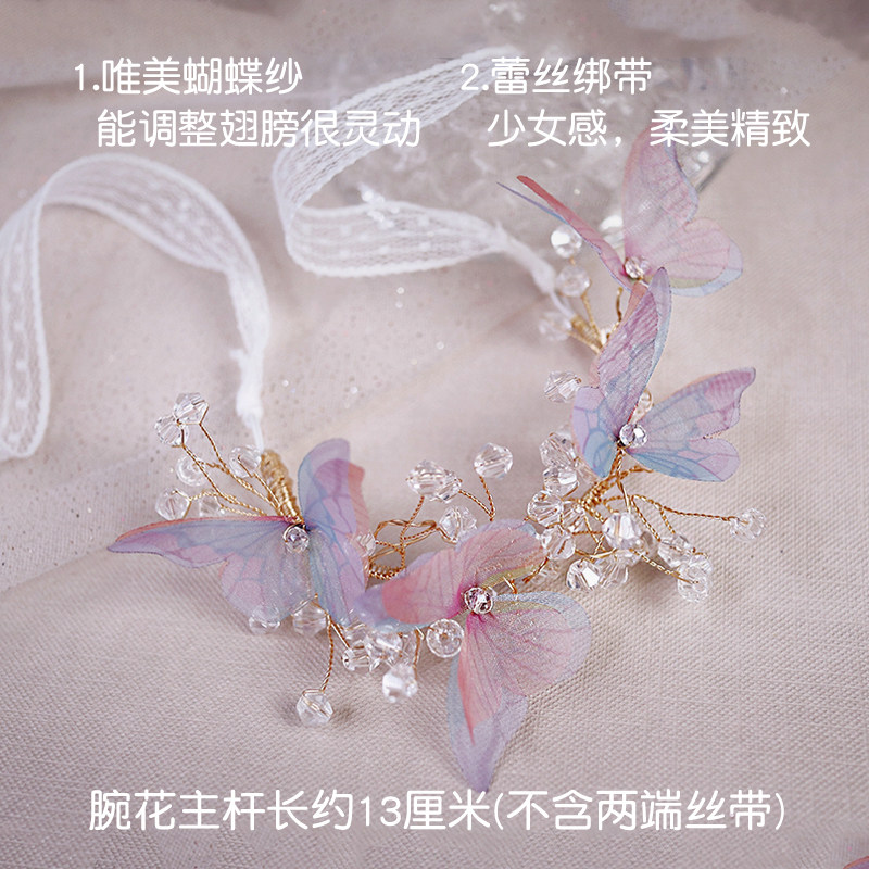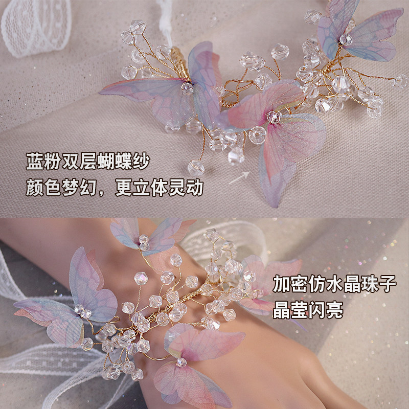 Superfairy little frescoed son's wedding bride wrist floral bridesmaid's hand ring floral blue pink butterfly crystal hand tied flowers-Taobao