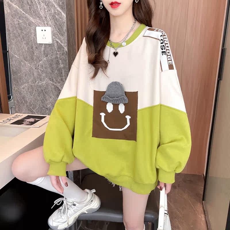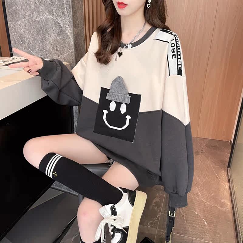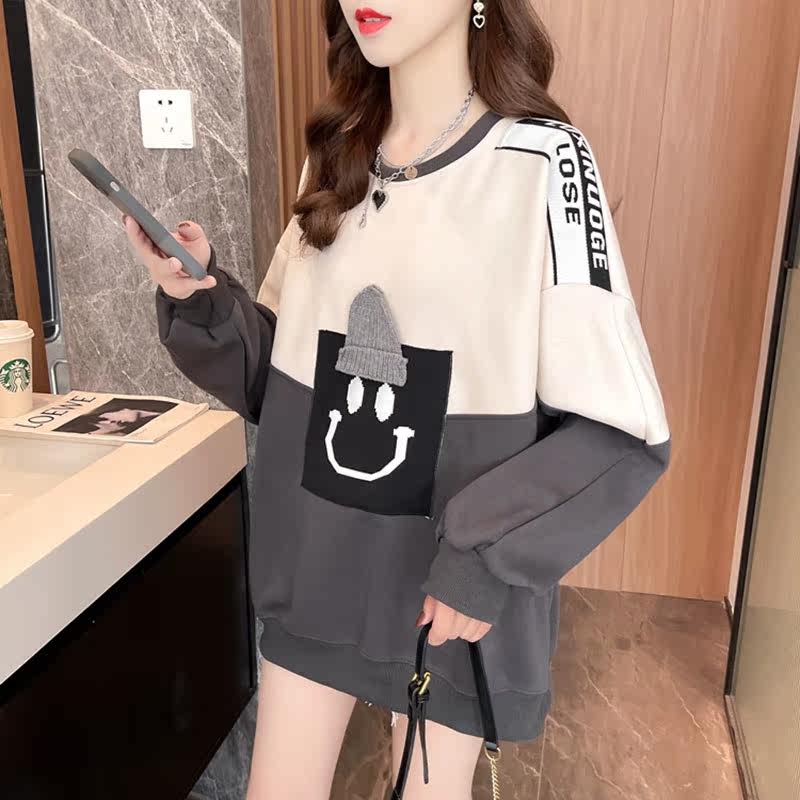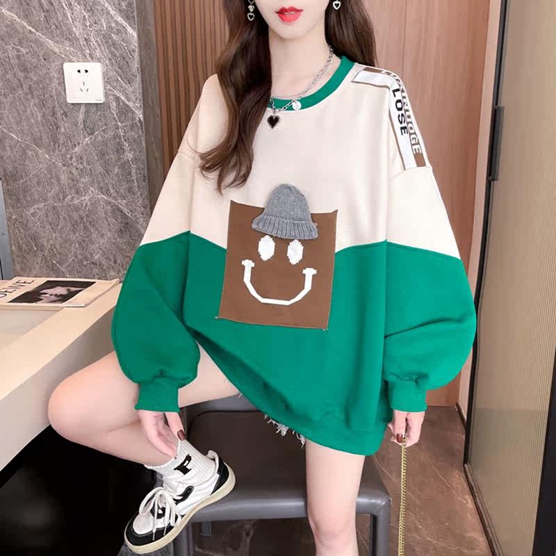 Splicing coloured silver fox hat-free jacket woman autumn plus thick weight mm large-yard loose belly blown street coat
