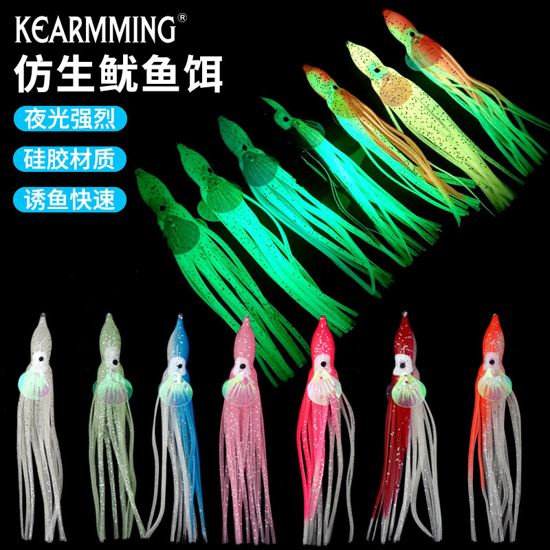 KEARMMING luminous bionic squid lure 12cm super strong fish lure effect soft bait octopus bait squid whiskers
