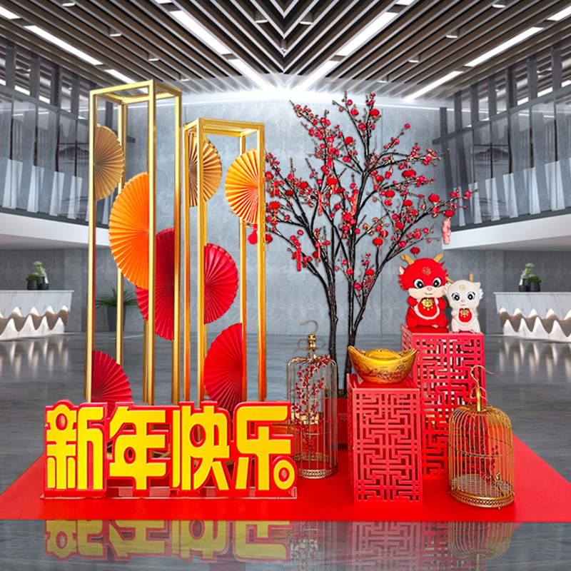 2024 New Year decorations Long year New Year's Day New Year's Day beauty Chen Paper Fan Hotel Lobby Mall Shop Window Atmosphere Scene Arrangement-Taobao