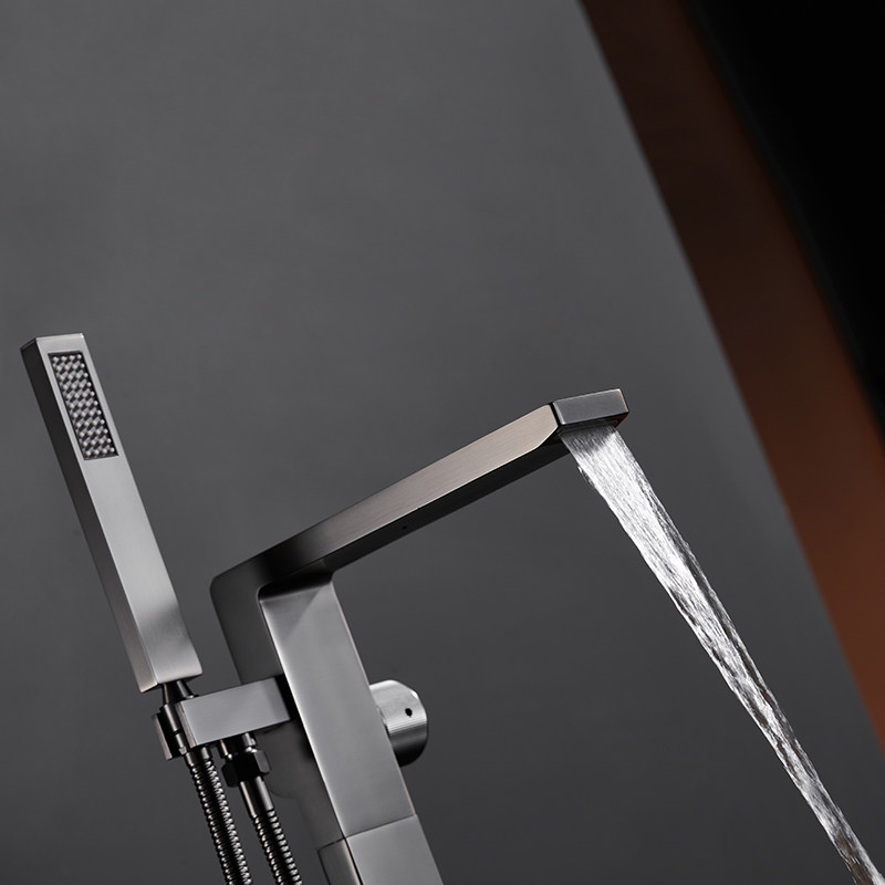 SIUMAL bathtub tap floor type shower head shower suit bathtub upright faucet large out water cooled hot black-Taobao