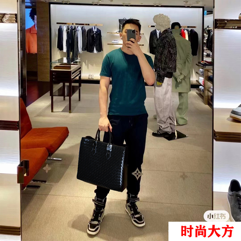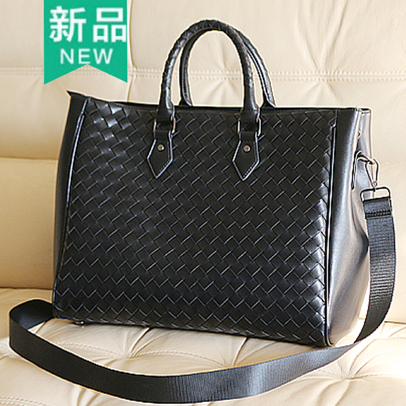 New high-end genuine leather woven men's bag large capacity Totbag men's hand carrying shopping bag fitness travel bag-Taobao