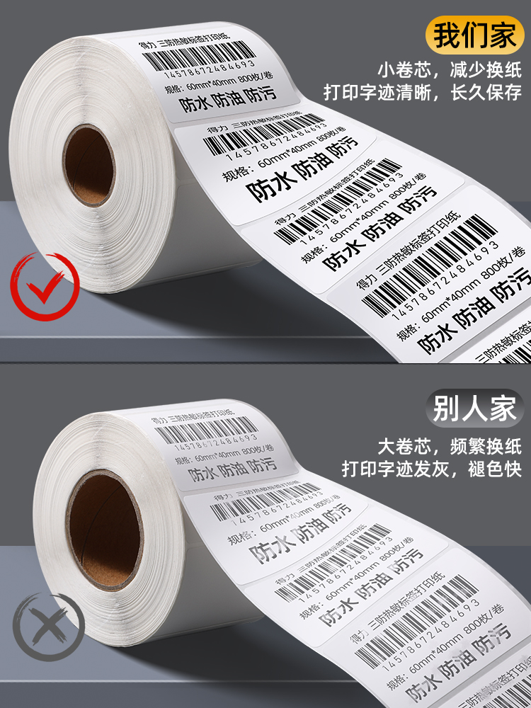 Right-hand thermal printing paper Three anti-heat sensitive labels Paper hot-sensitive paper 40 30 30 60 60 80 80 100x100 sticker adhesive delivery single supermarket electronic called paper barcode paper