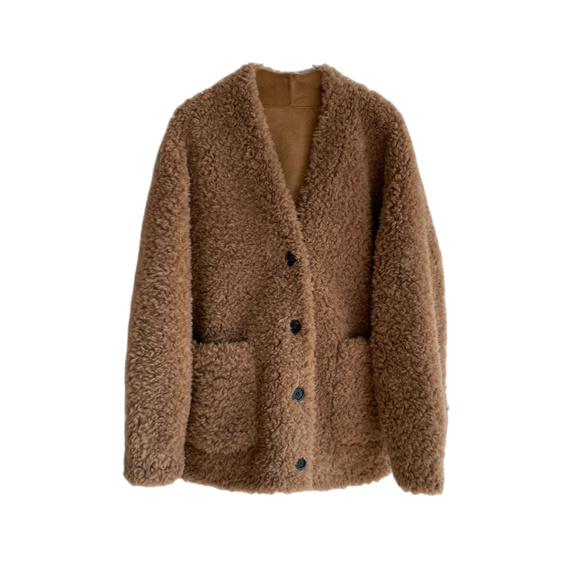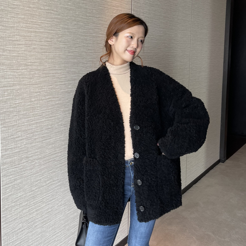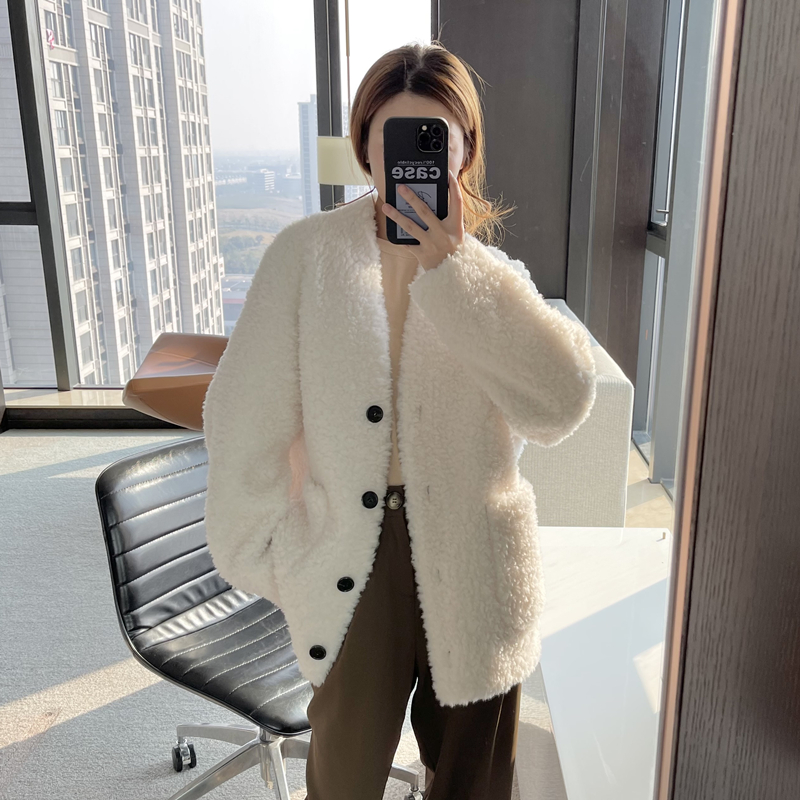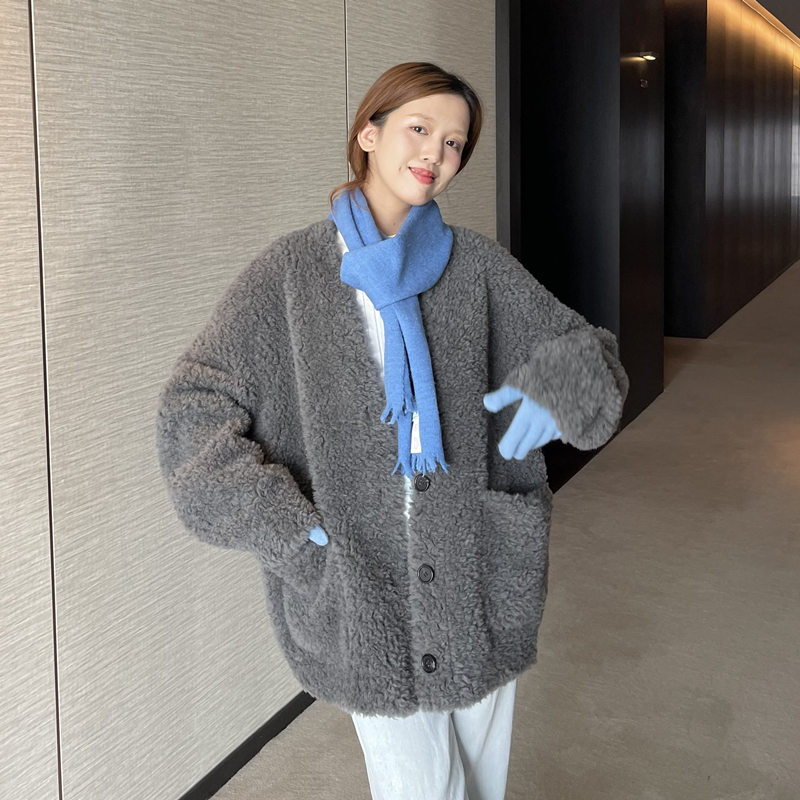 Australian lamb fur 2022 winter new fur one women's mid-length sheep shearing coat v-neck cardigan