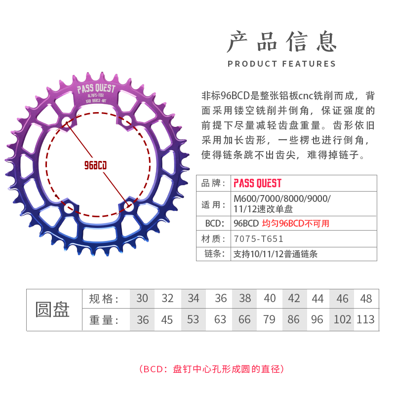 PASS QUEST X96bcd 11 12 speed m80006000 5100 positive and negative tooth disc round single disc xtr