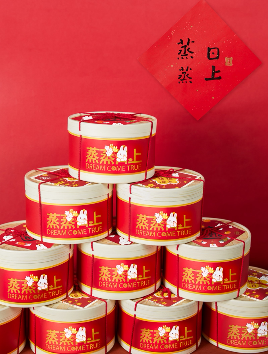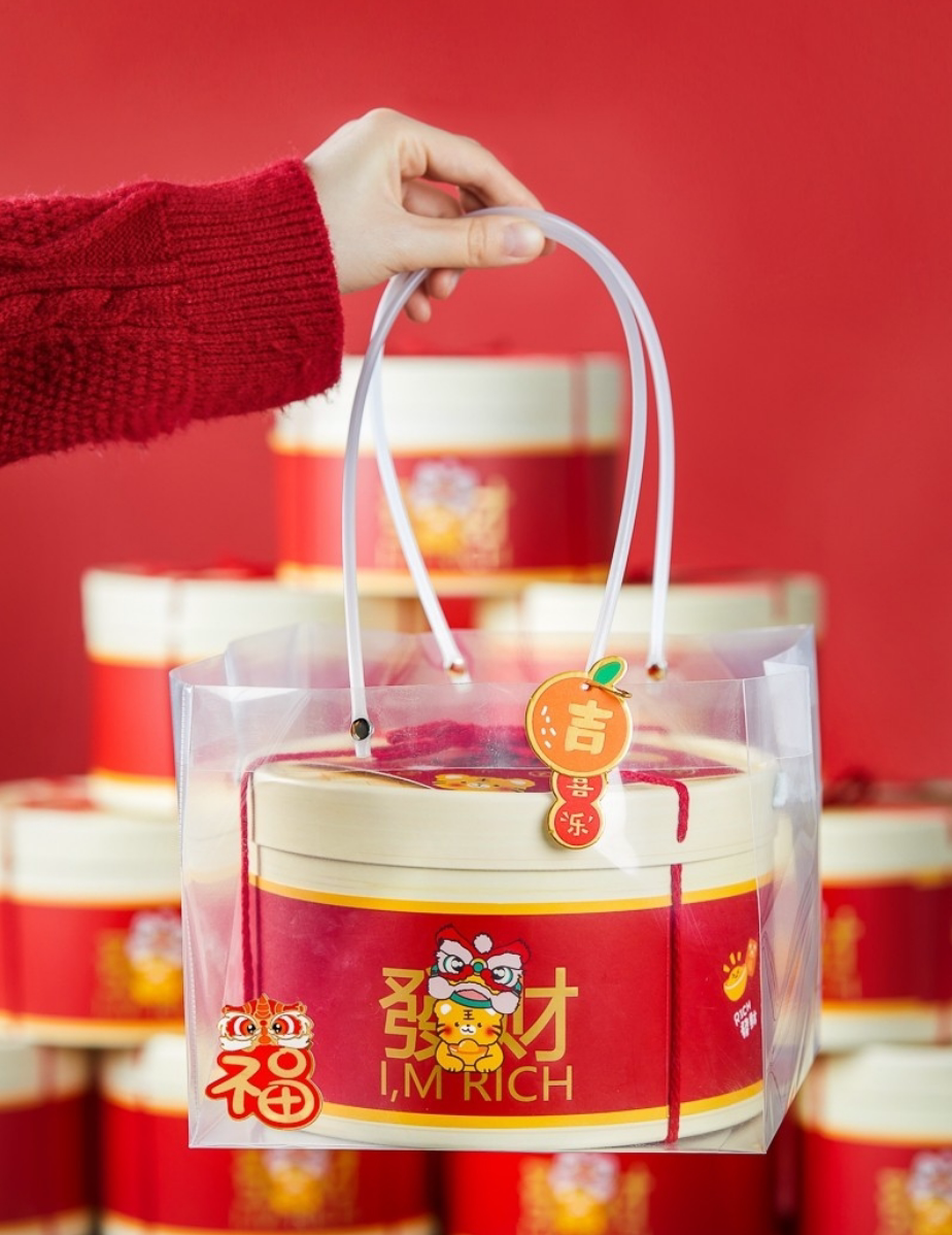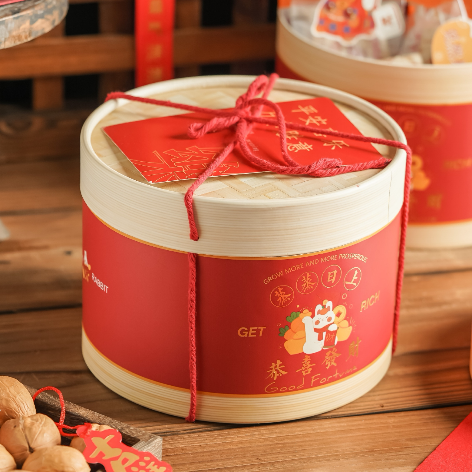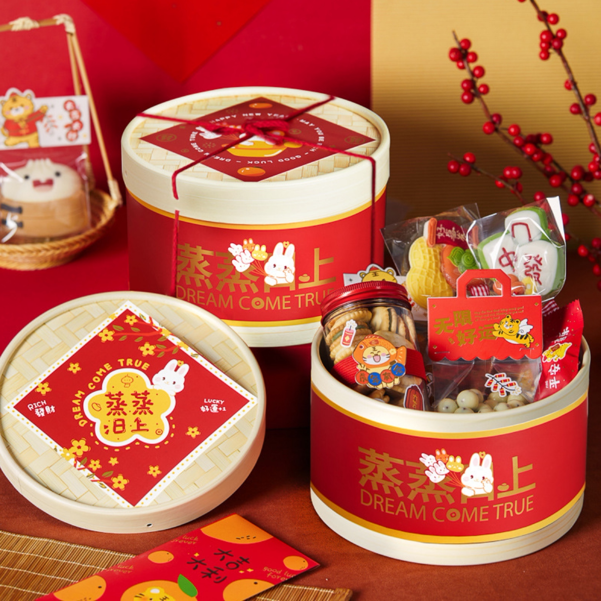 2023 New Year's Year of Rabbit Steamed Cage Hug Hug Buckets of Biscuit Candy Year Cake Packaging Boxes for Spring Festival Cake Packaging