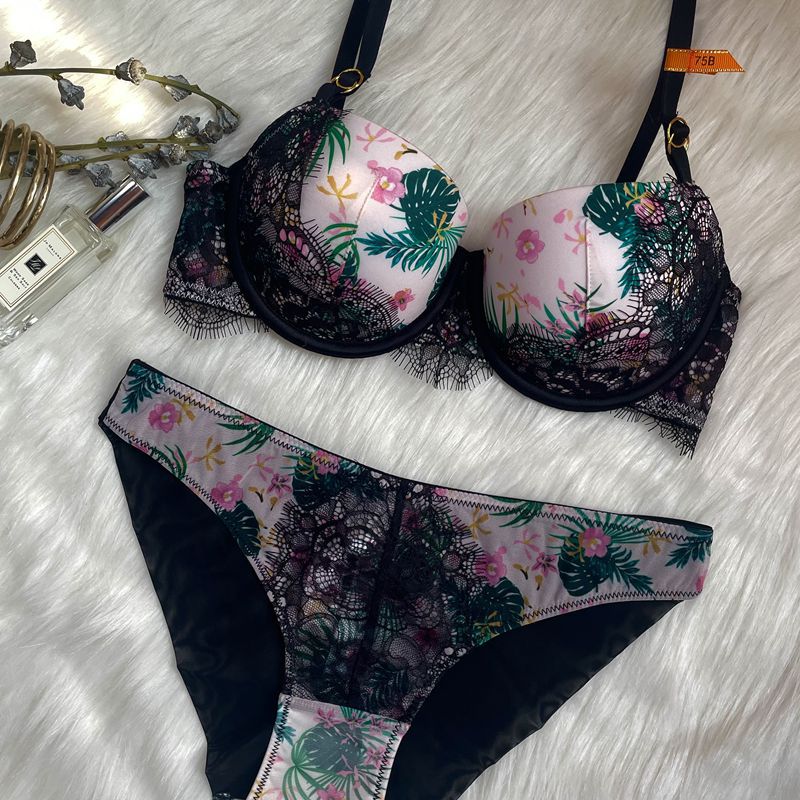 French sexy white light surface gathered black lace gathered underwear small chest large bra suit woman