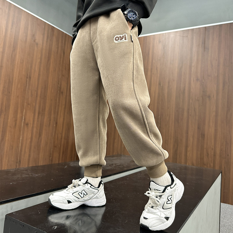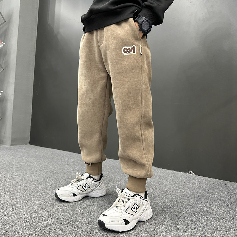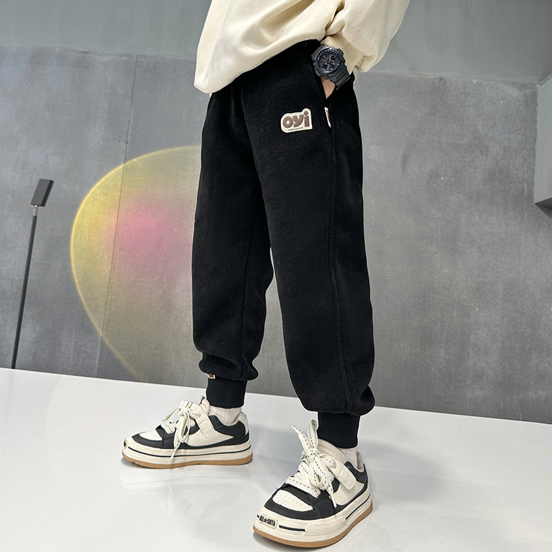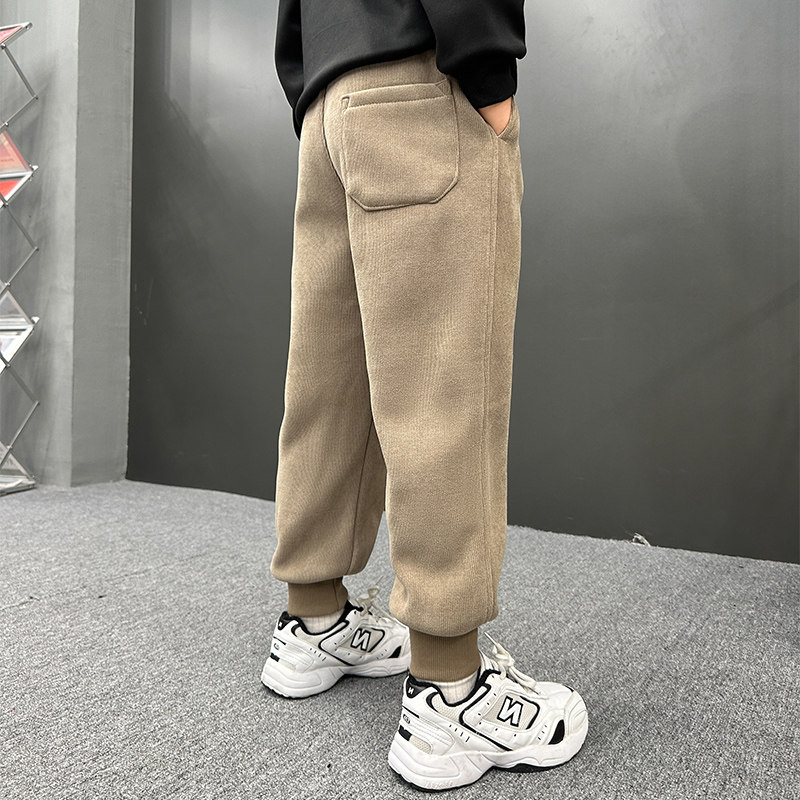 Boy plus suede pants integrated suede autumn winter style 2023 new children thickened winter light core suede casual wee tide-Taobao