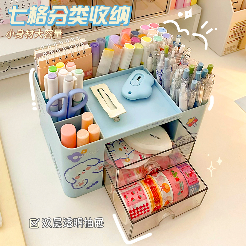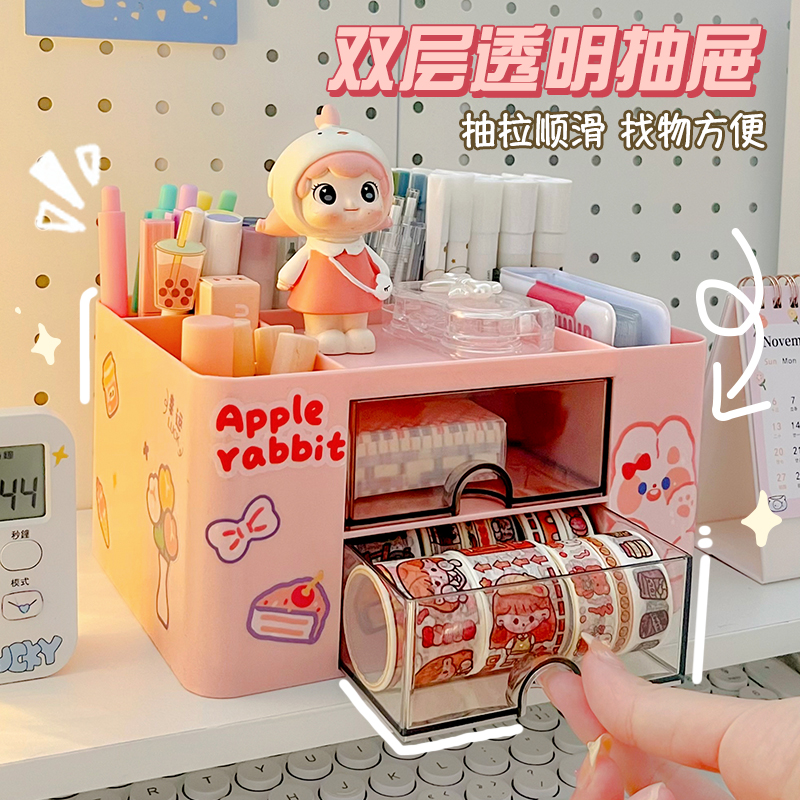 Drawer Pen Holder Containing Box Cute Children Girl Elementary School Kids Desktop Stationery Containing Box Multifunction Large Capacity Pencil Case Desk Pen Holder Integrated Putting Pen Barrel Girl Creative Light Luxury-Taobao