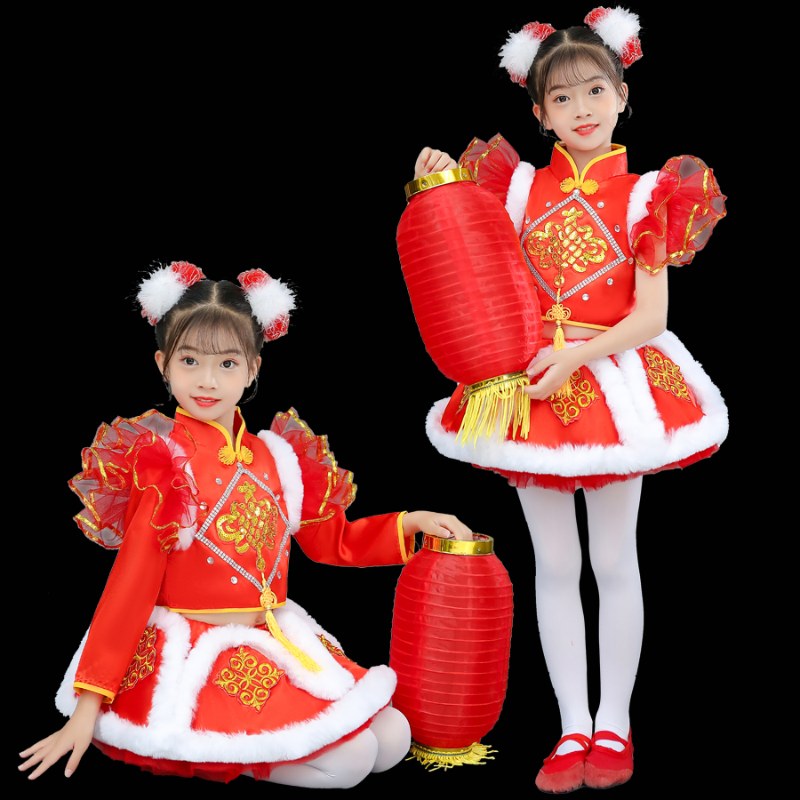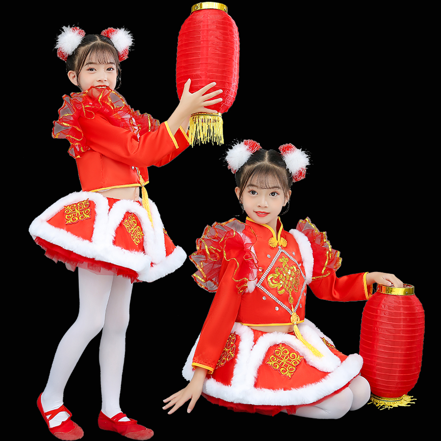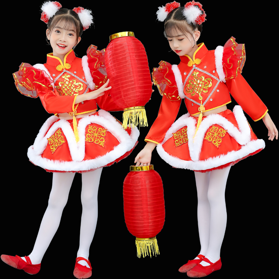 New Year's Day children celebrate China's red performance with male and female children young children dance skirts lantern dream Taiping drum performance suit-Taobao