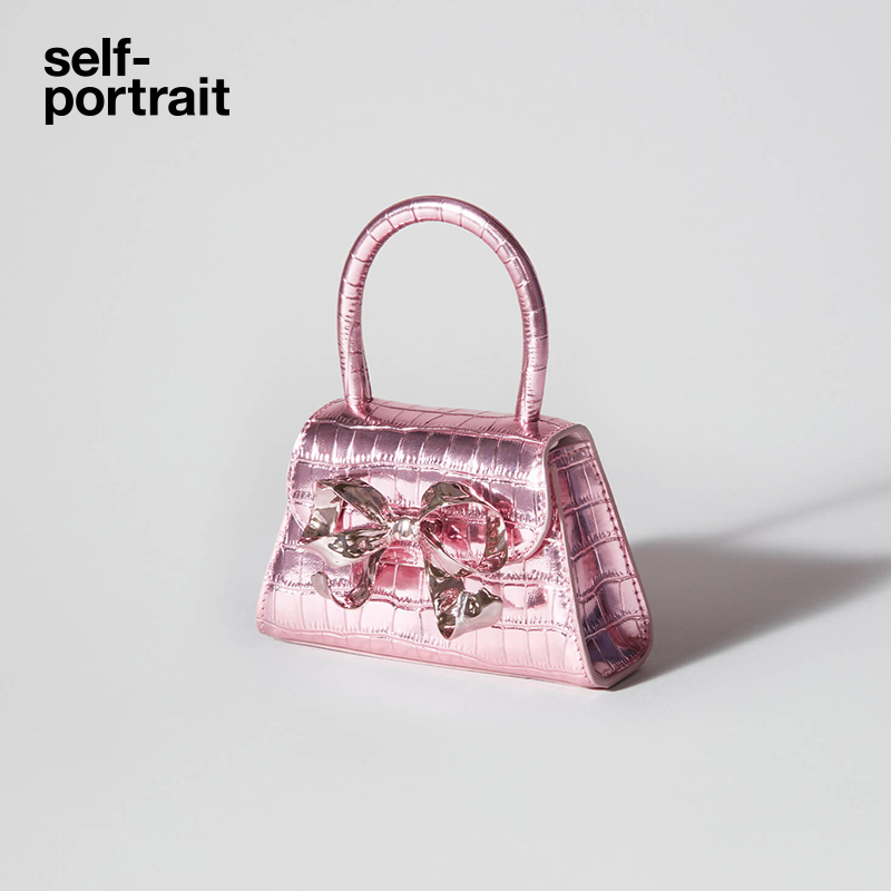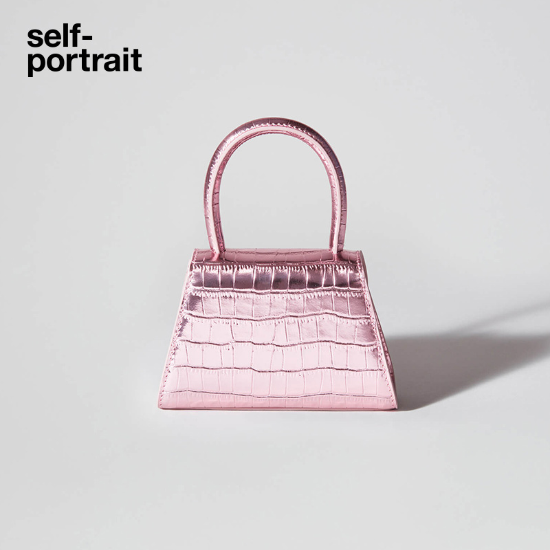 self-portrait 2023 early spring light pink purple micro metallic crocodile pattern handbag